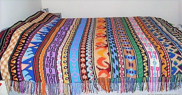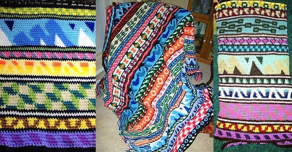 Colors are carried over and designs are worked in from a chart. Easy written row-by-row instruction is also included. Colors required are not provided as this project is to be made in colors of YOUR choice :) ! The color photo provided could be used for guidance.