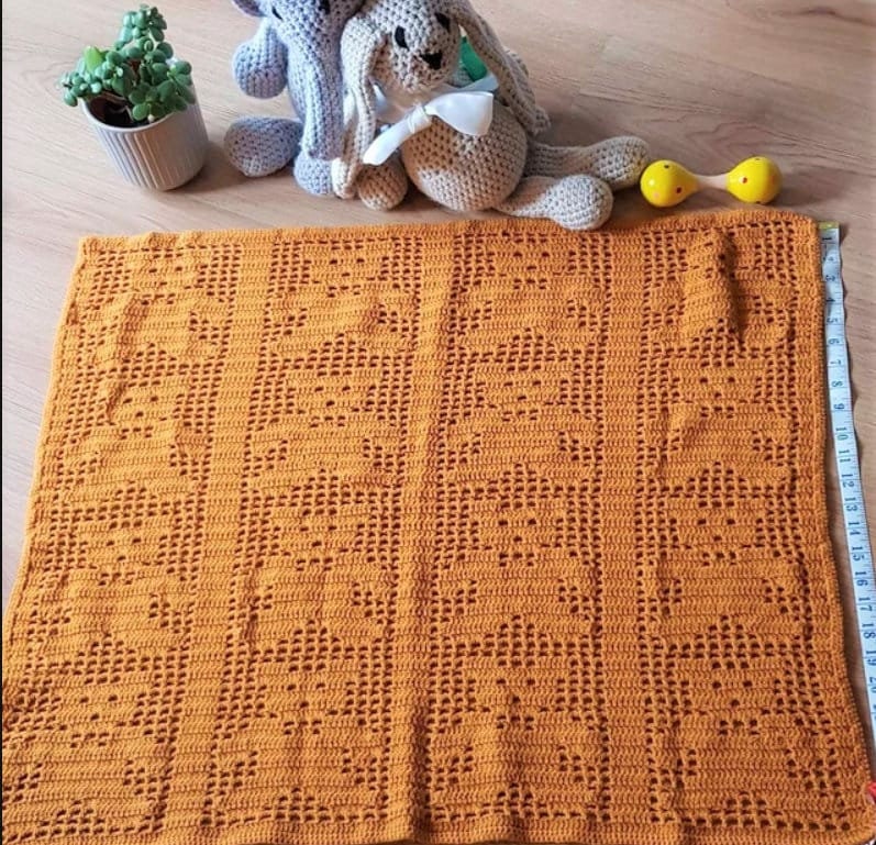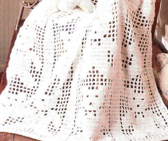 Offering a vintage digital PDF knitting pattern to make a beautiful filet crocheted Teddy Bear baby blanket.