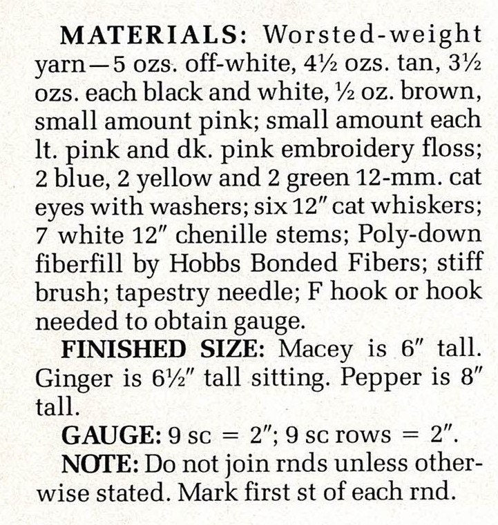 Vintage Crochet Pattern Three 7" Fluffy Kittens Amigurumi PDF Instant Digital Download Realistic Long Haired Kitty Cat Plush 10 Ply