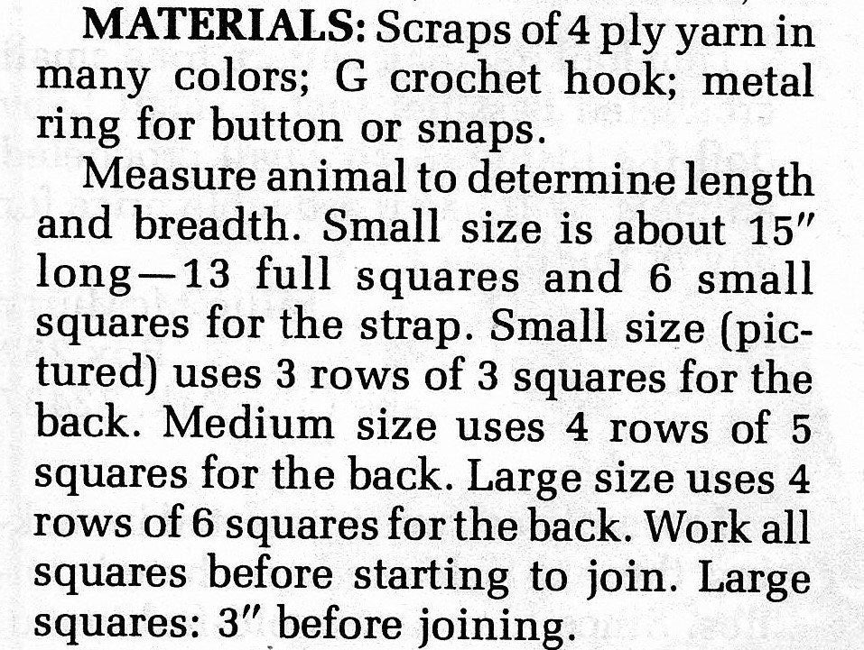 Vintage Crochet Pattern Traditional Granny Square Belted Dog Sweater Coat PDF Instant Download Small Medium Large Sizes 4 Ply