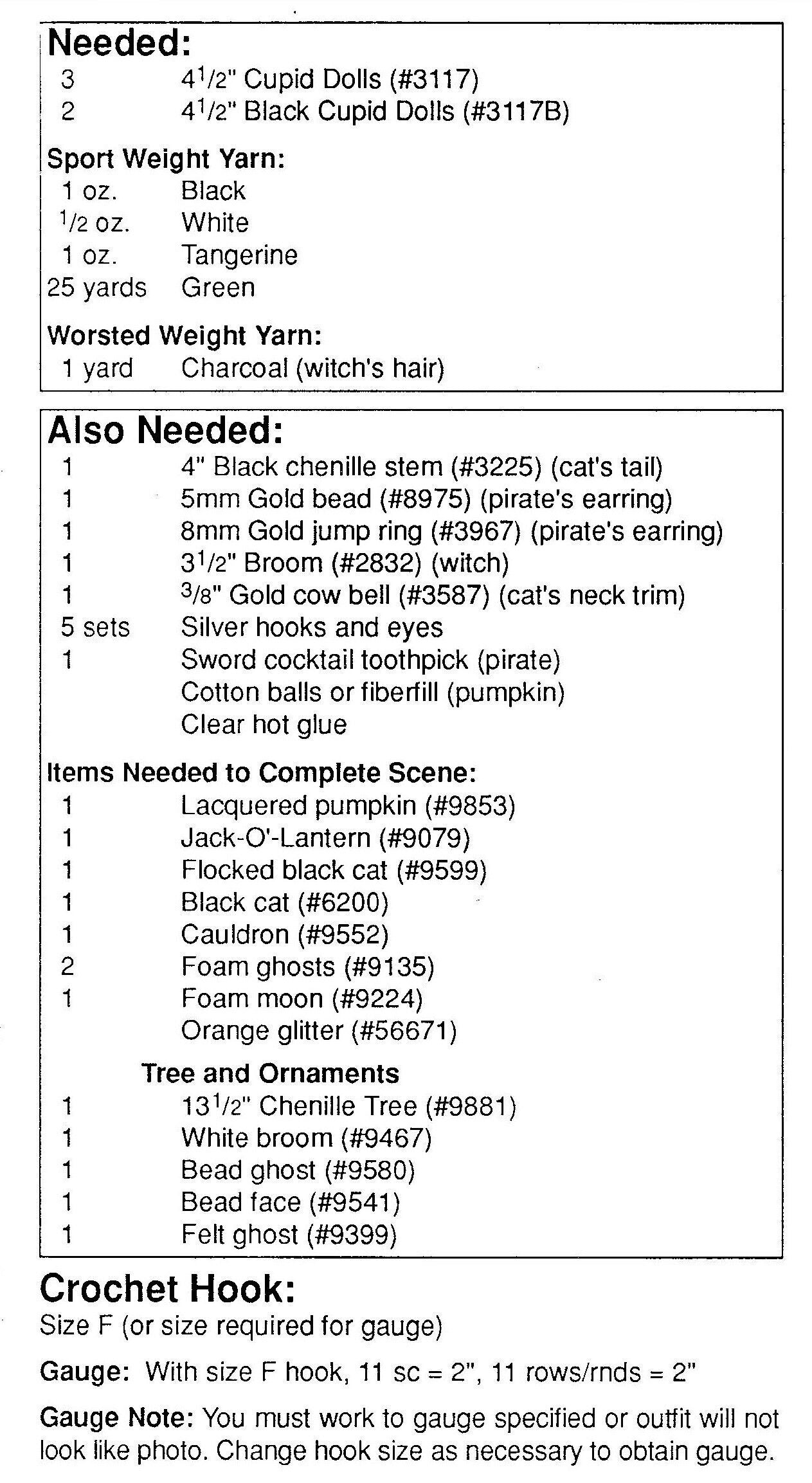 Offering a vintage instant PDF pattern collection for crochet - "Trick-Or-Treat Cupids" - instructions to make Halloween Costume outfits for 4 inch to 4.5" Cutie, Impkins or cupid craft dolls (or any 4-5 inch doll) in 5 ply.