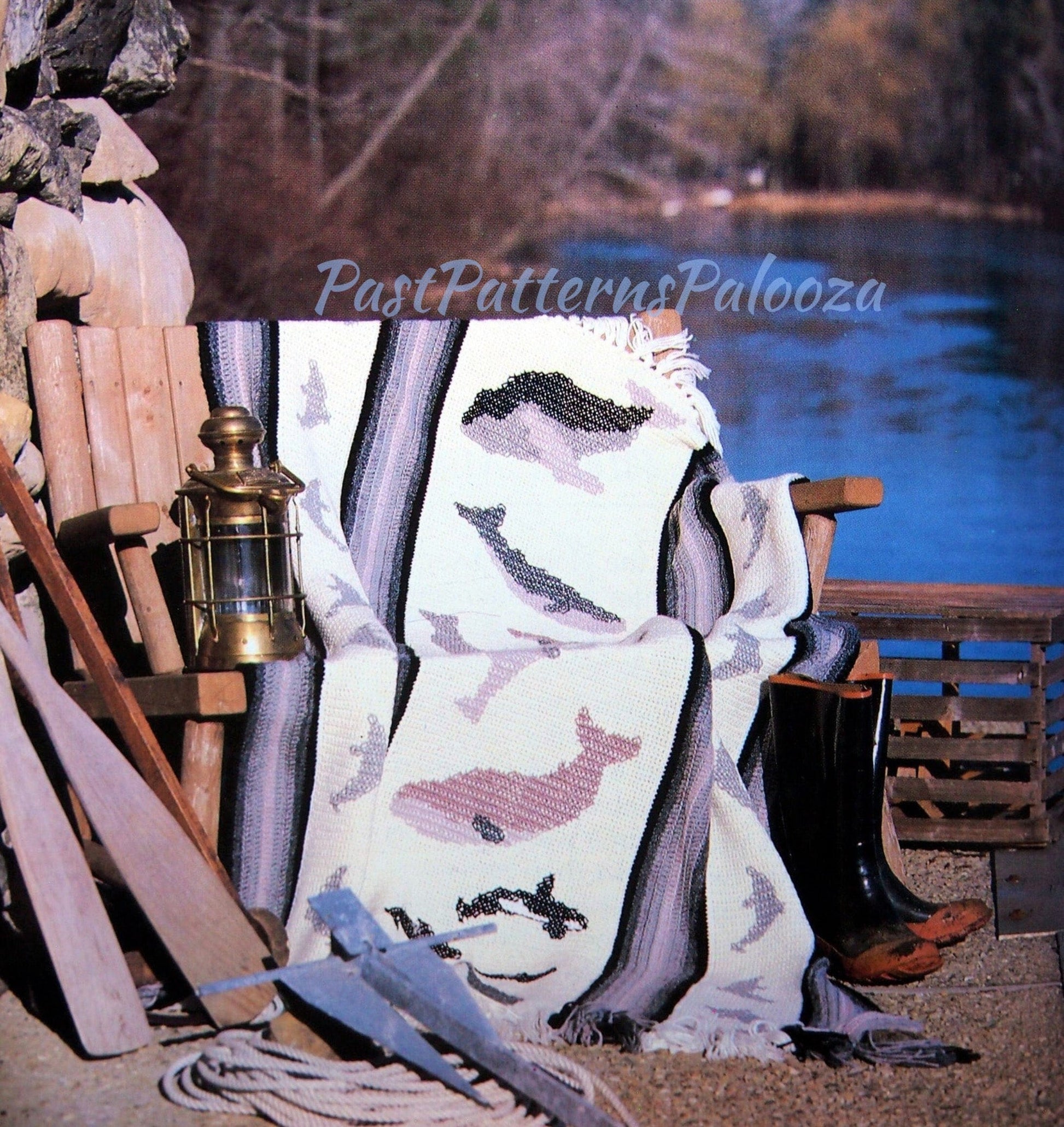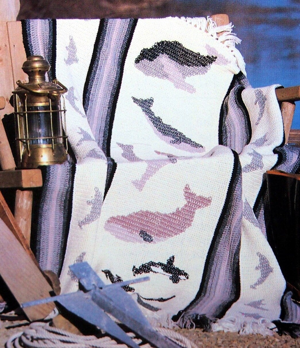 Vintage Crochet Pattern Whales Dolphins Afghan PDF Instant Digital Download Cross Stitch Ocean Sea Marine Cetaceans Blanket 50x66 10 Ply