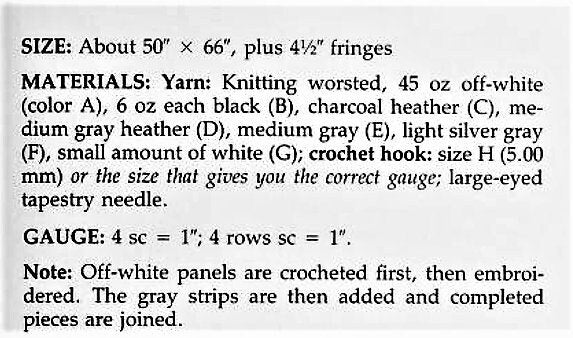 Gray stripes are added, panels joined and then afghan is finished with fringe - a stunning project!