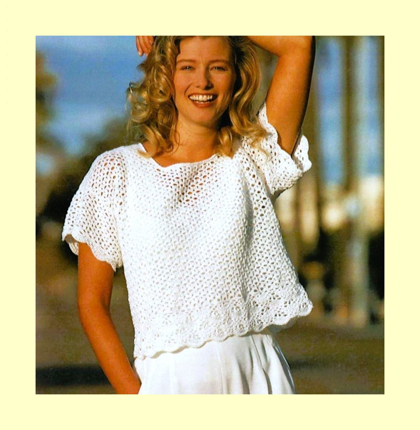 Vintage Crochet Pattern Womens Lacy Short Sleeve Summer Tee Top PDF Instant Digital Download Pretty Retro Loose Fit Blouse T-Shirt 4 Ply