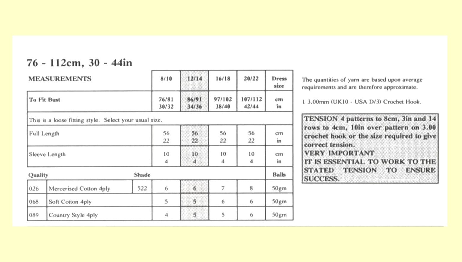 Directions are given for four womens sizes: 8-10 (12-14, 16-18, 20-22).