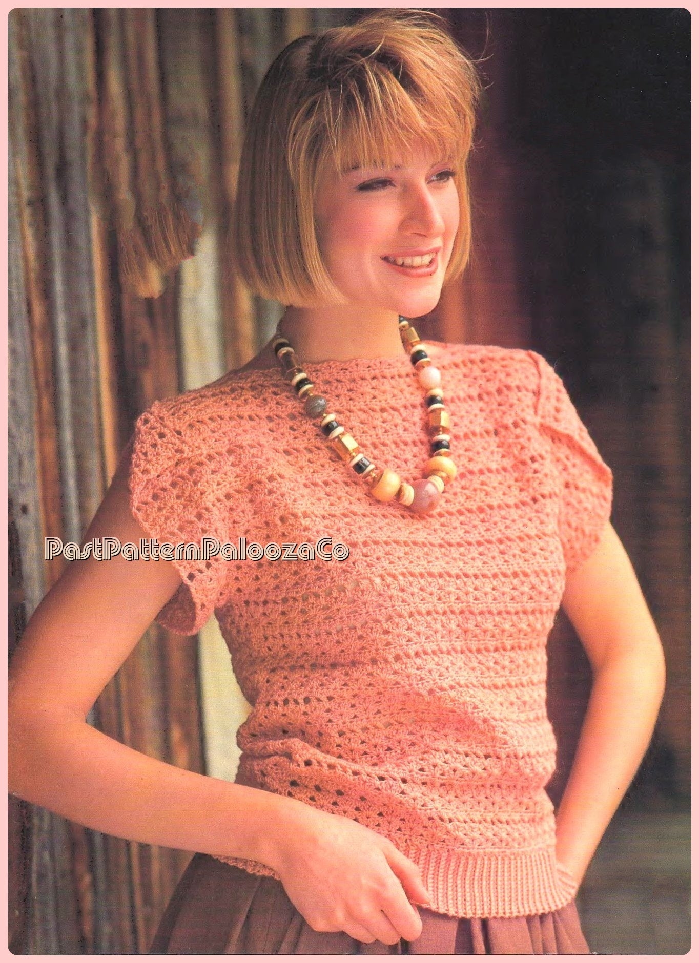 Vintage Crochet Pattern Womens Lacy Summer Blouse Tee Top PDF Instant Digital Download Pretty Retro Short Sleeved Cotton Thread