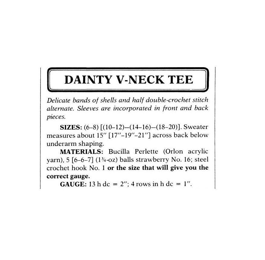 Vintage Crochet Pattern Womens Lacy V Neck Summer Tee Top PDF Instant Digital Download Pretty Retro Blouse T-Shirt 5 Ply
