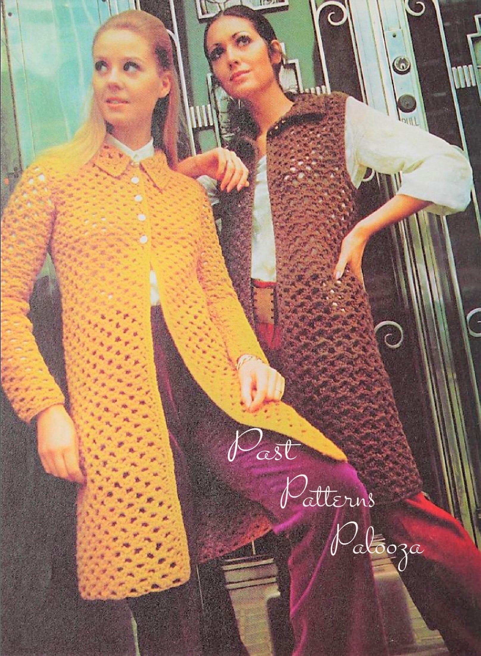 Offering a vintage digital PDF crochet pattern to make retro, pretty maxi coats in two styles!