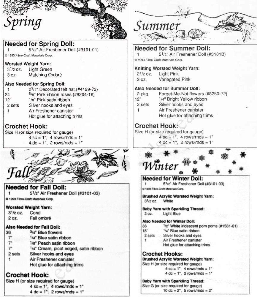 Vintage Crochet Patterns 6" Air Freshener Dolls Four Seasons Dress Outfits PDF Instant Digital Download Scented Sweeties 10 Ply