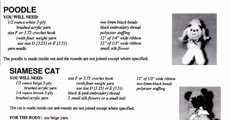 Vintage Crochet Patterns Mini Puppies Kittens Cats Dogs Soft Toys PDF Instant Download Poodle Schnauzer Siamese 6 Amigurumi 3 Ply