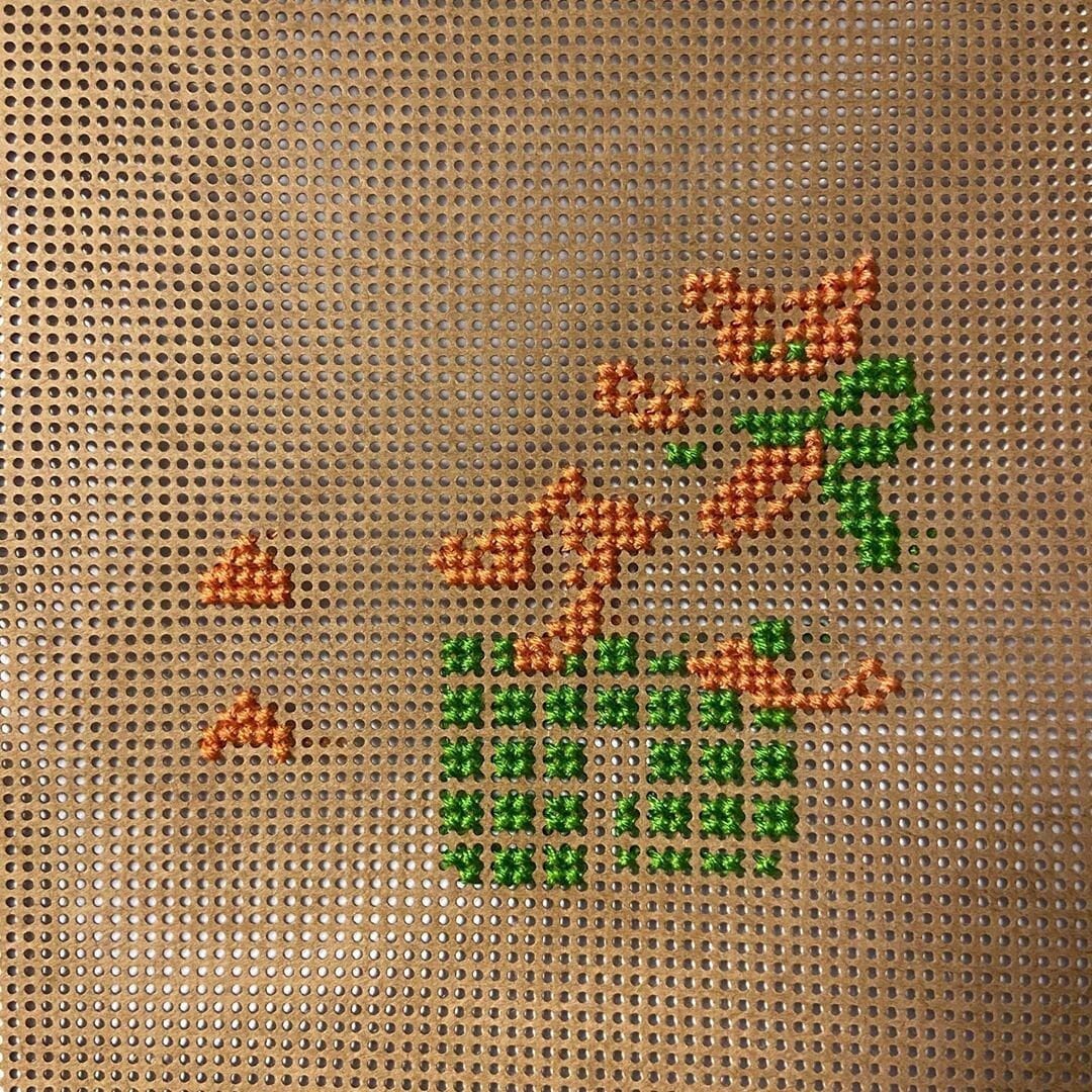 Requires: 4"x 6" rectangle of brown perforated paper, colored embroidery floss, needle, scissors and glue.