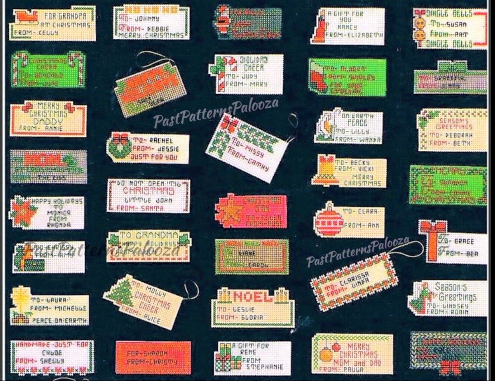Offering a vintage digital PDF cross stitch pattern to make handmade Christmas gift tags!