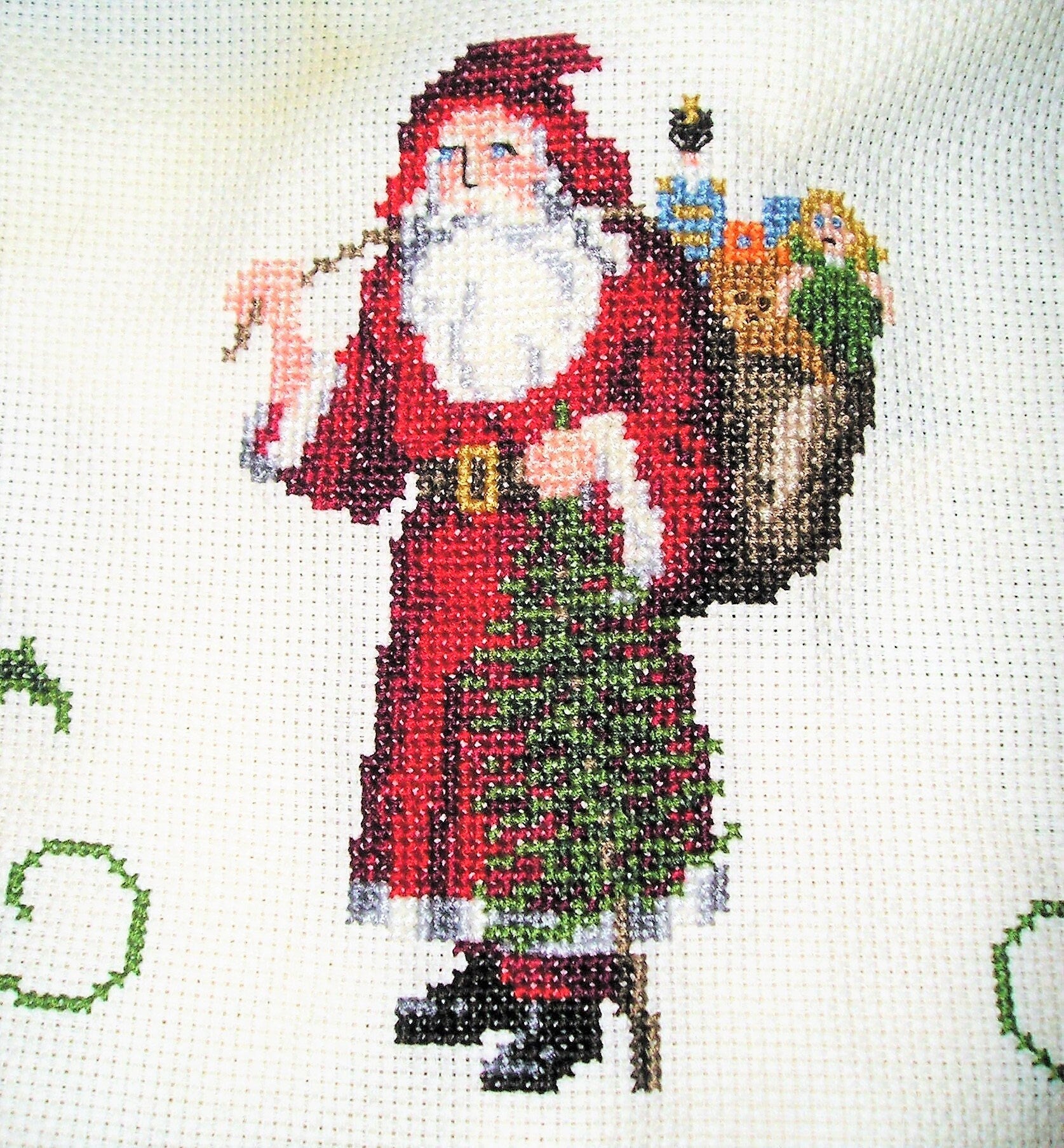 Includes full instructions to stitch Old World Santas design to a 42" prefinished Tilla Christmas Tree skirt from Zweigart OR any other suitable prefinished skirt in 10 count.
