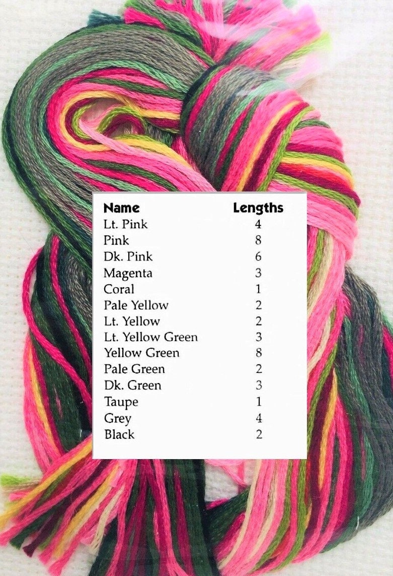 Offers stitch and color keys and 2- piece chart and materials / floss colors needed for project.