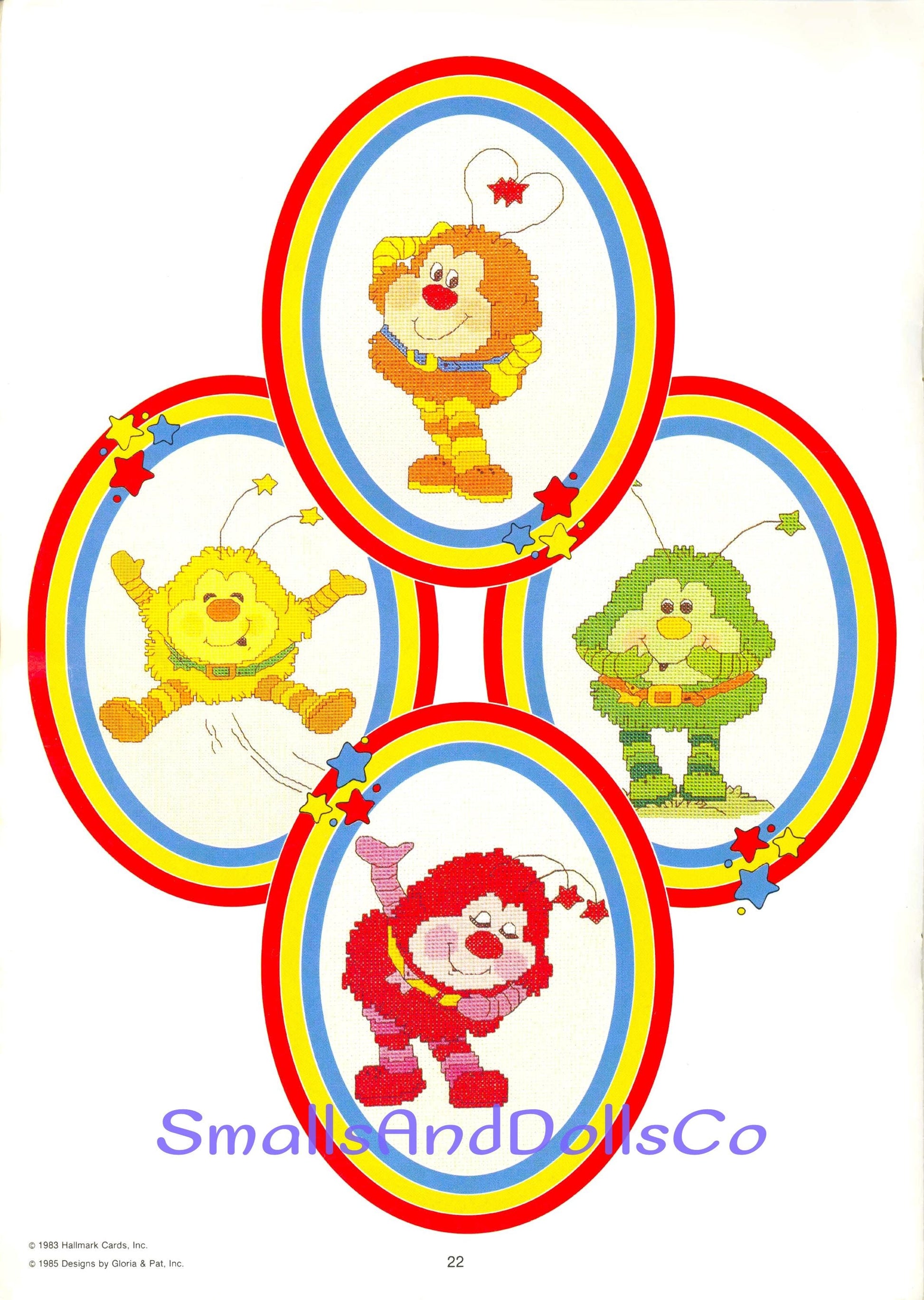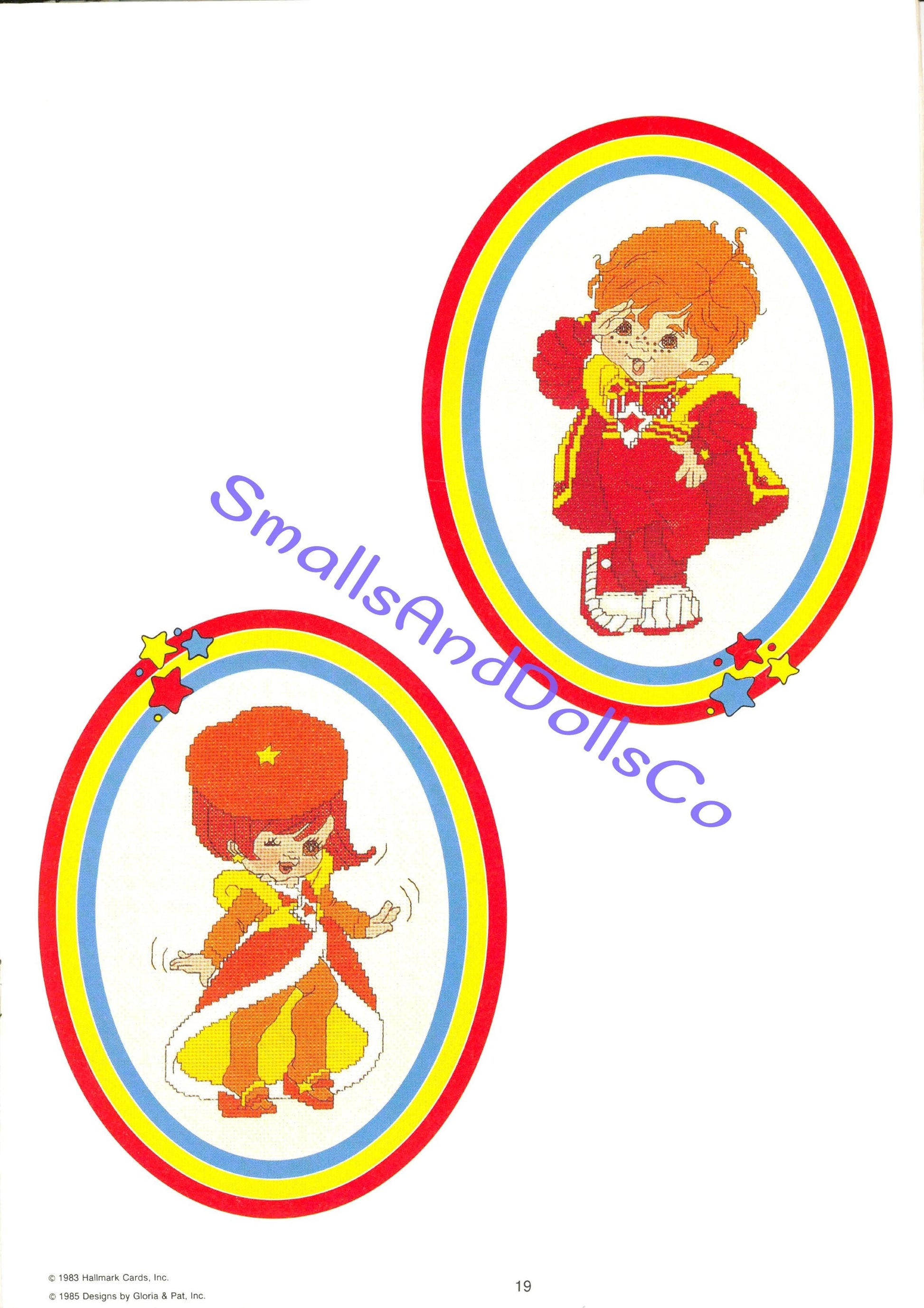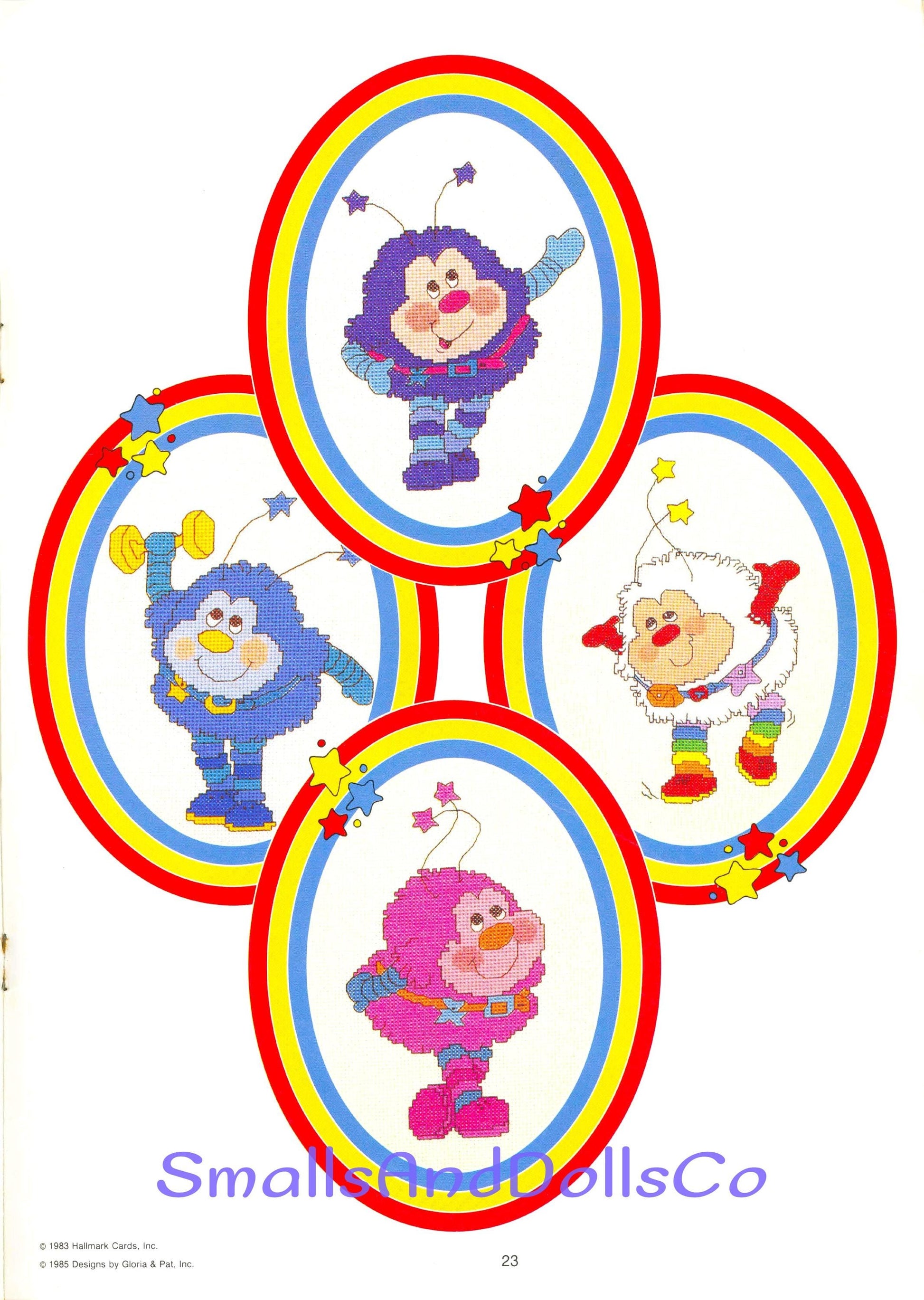 Offering a vintage digital PDF counted cross stitch pattern collection to make 21 endearing Rainbow Brite designs!