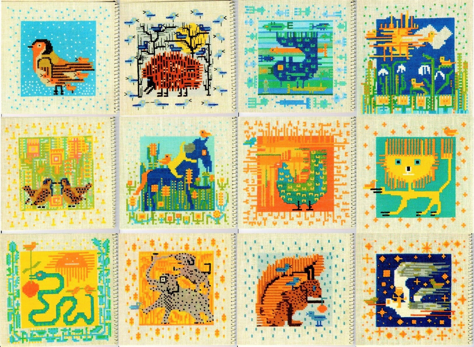 This was from a 1970 calendar, and features one animal design that was presented per calendar month. Fun, funky, modern animal designs :).