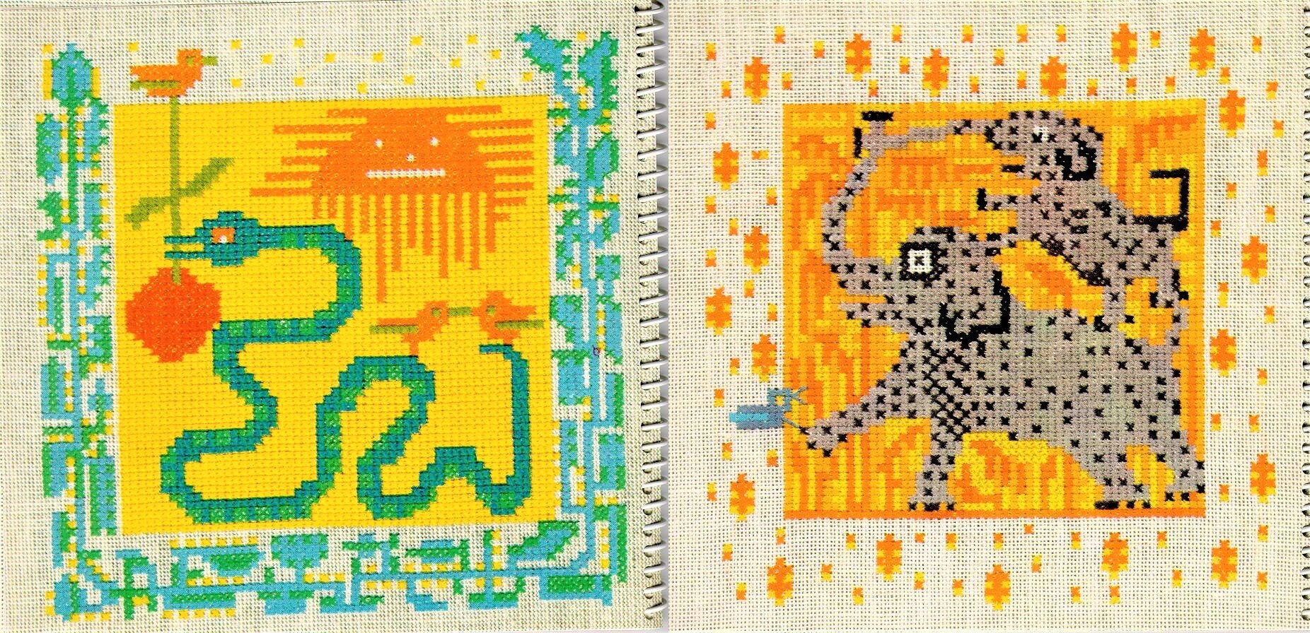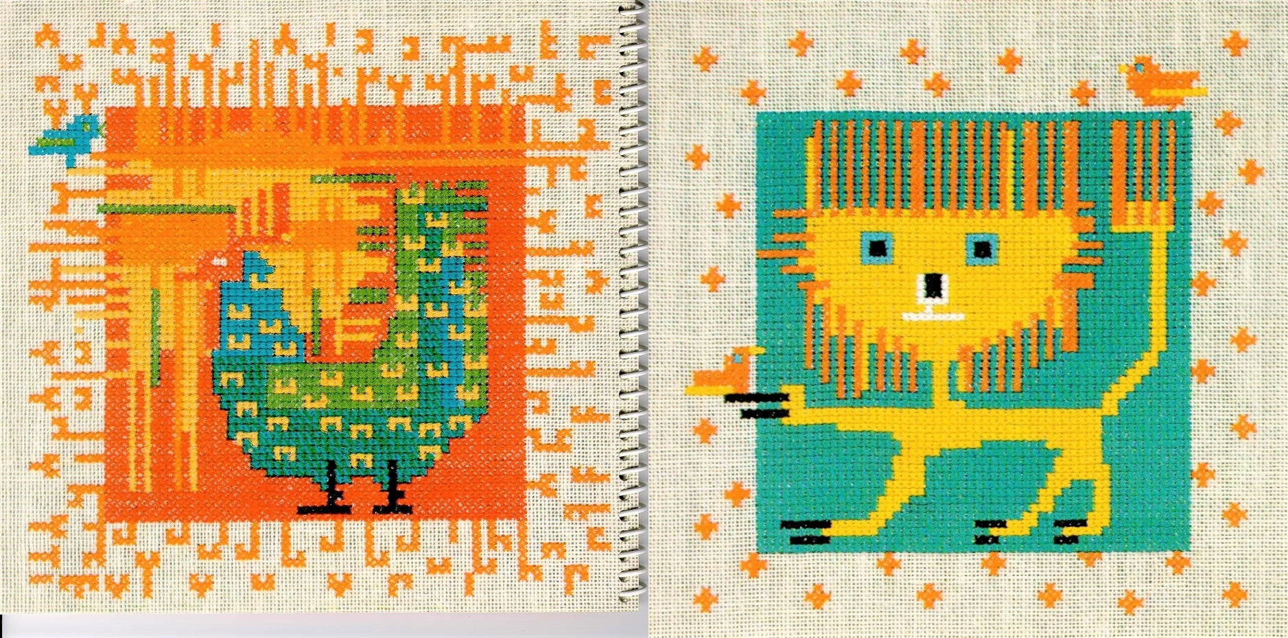 Offering a vintage digital PDF cross stitch pattern to make bright and whimsical retro animal themed projects!