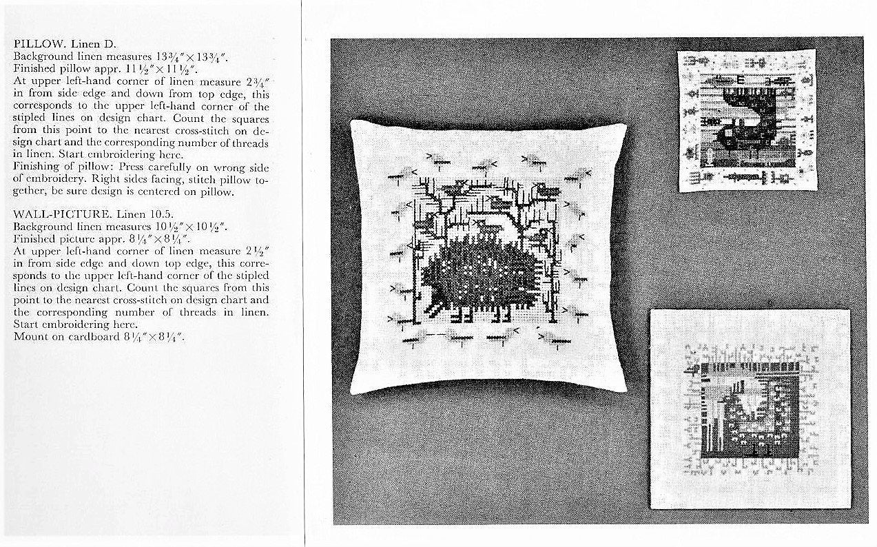 Offers color keys for cross-stitches and back stitches and charts to make these fun designs as per pictures. Some colors are DMC and some are H.F. (Danish Flower Thread colors) so a few may need to be converted to DMC, using pictures as reference.