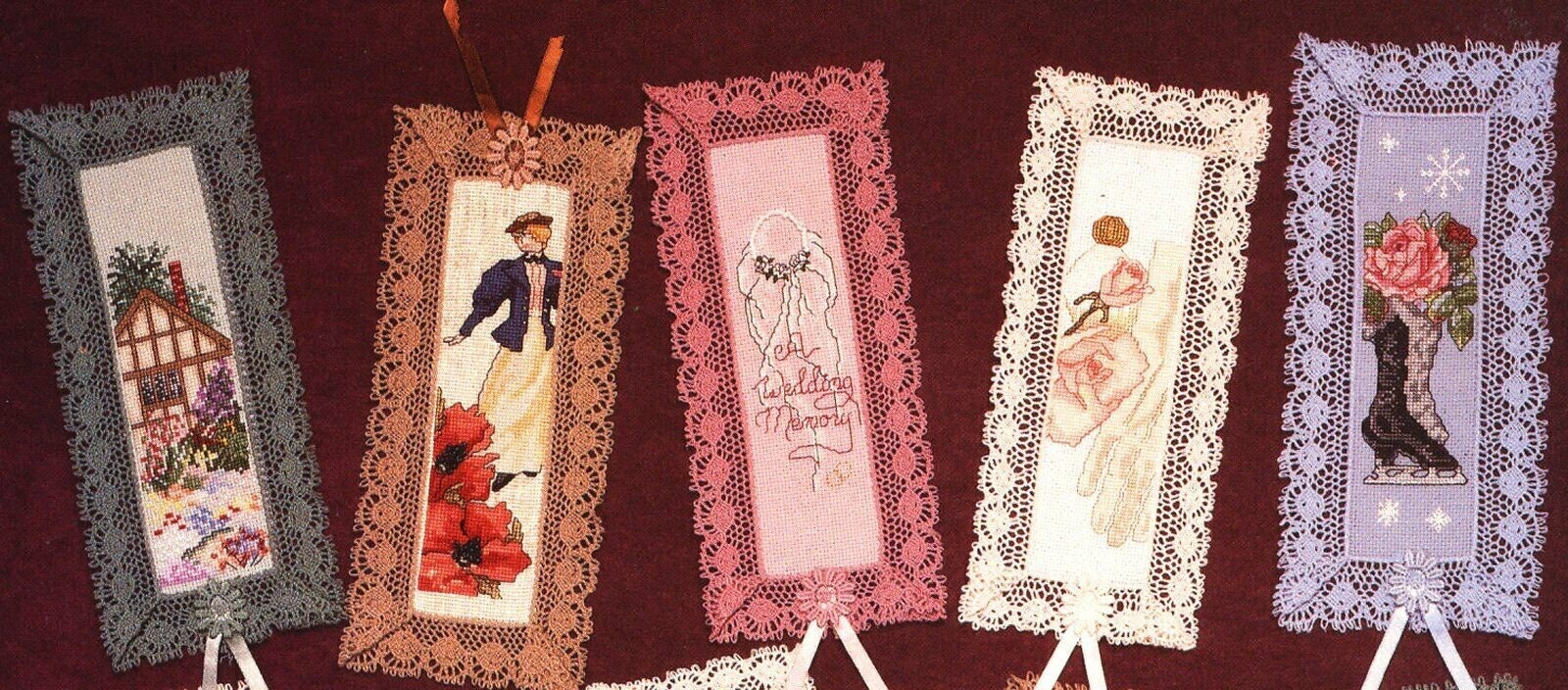 Vintage Cross Stitch Patterns Victorian Bookmarks PDF Instant Digital Download 12 Pretty Embroidered Book Marks Lace Ribbons Beading