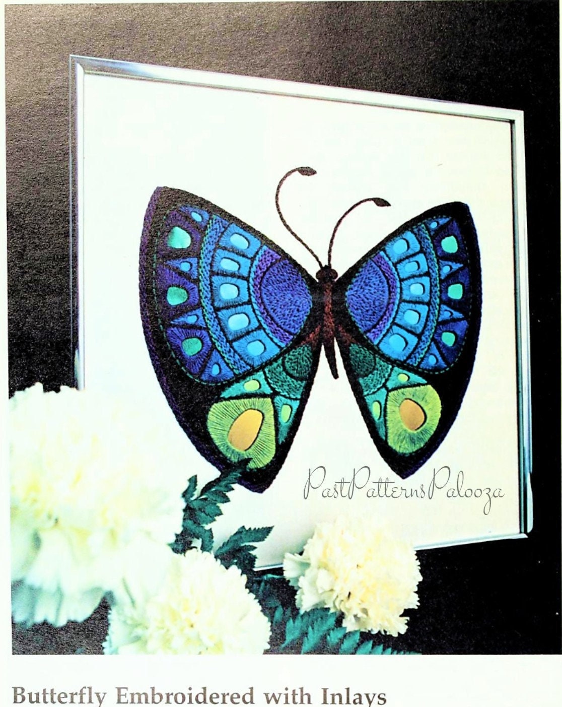Vintage Embroidery Pattern 9" Beautiful Boho Butterfly Metal Inlay Wings PDF Instant Digital Download Retro Mod Bohemian Wall Hanging