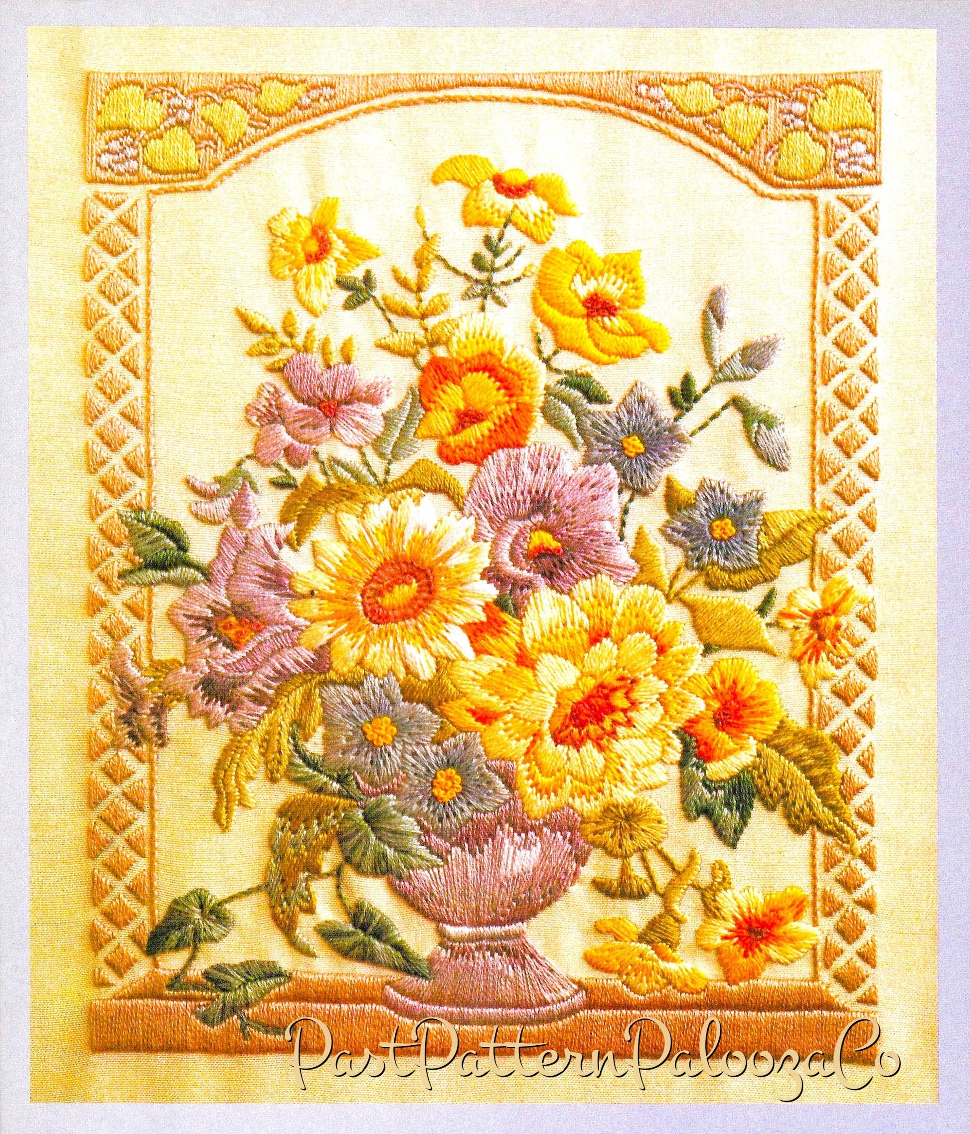Offering a vintage digital PDF embroidery pattern to make a beautiful English Country Flower vase in 16 floss colors!