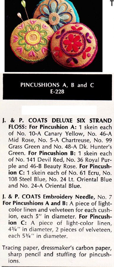 Offering a vintage digital PDF sewing pattern to make stunning hand embroidered flower pin cushions!