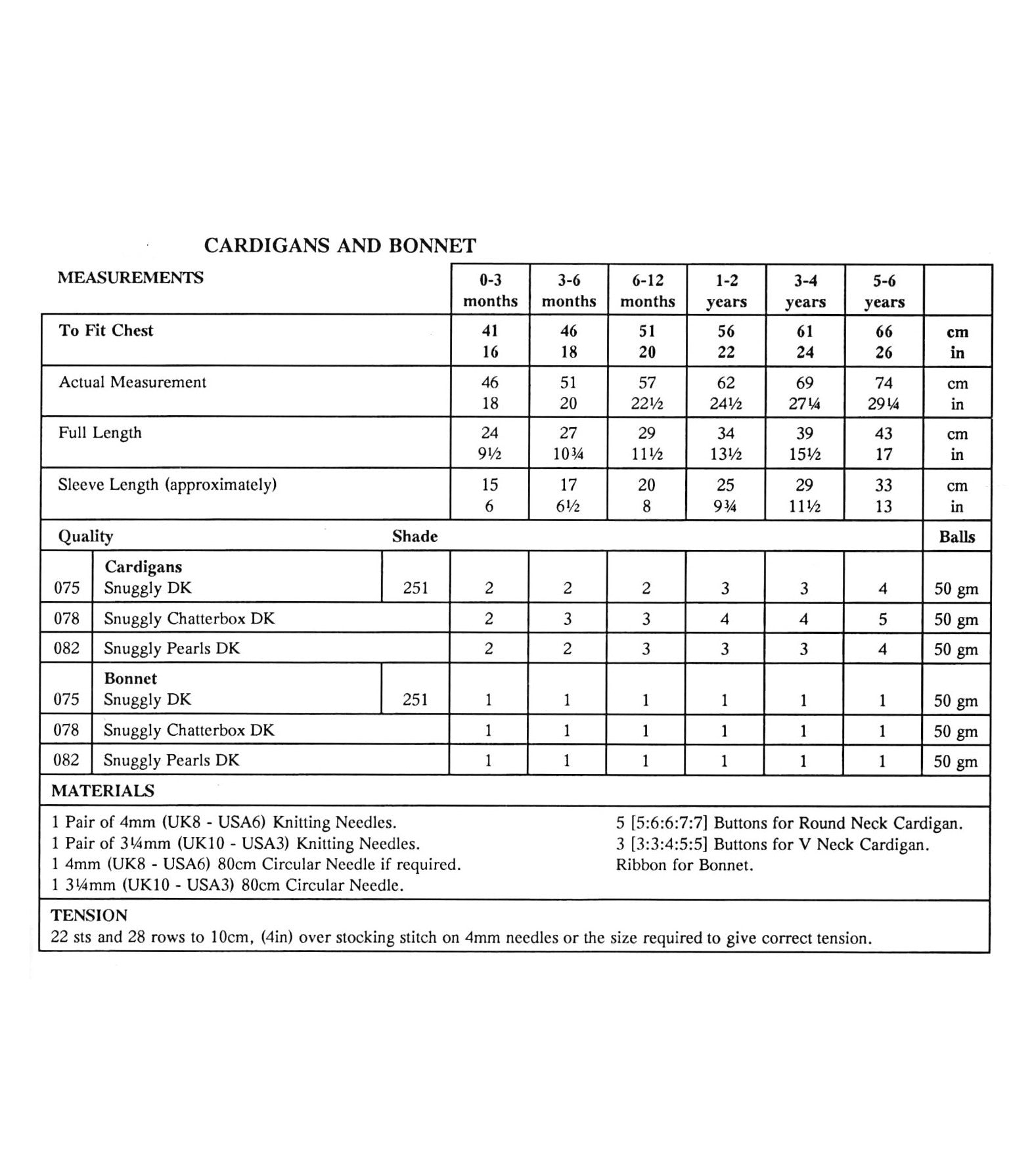 Instructs for six sizes: 0-3m, 3-6m, 6-12m, 1-2 yrs, 3-4 yrs and 5-6 yrs.