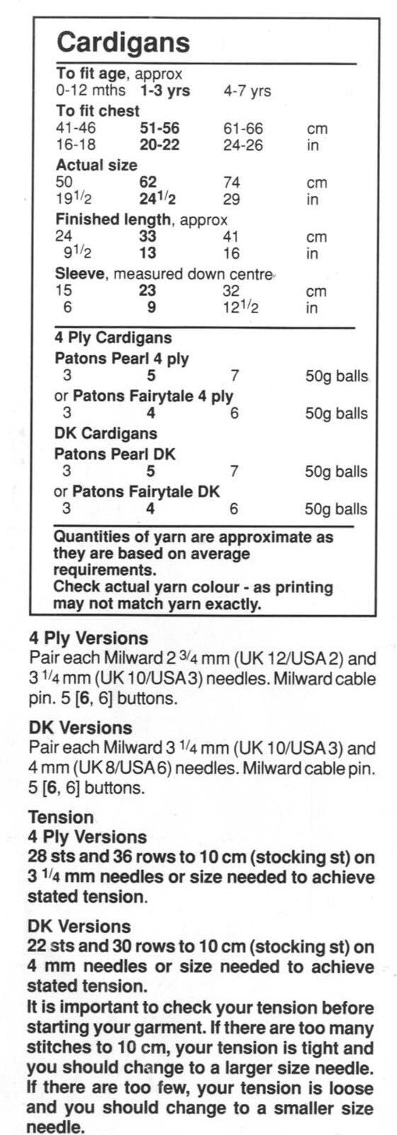 Instructions for both 4-ply yarn and DK yarn are included for each.