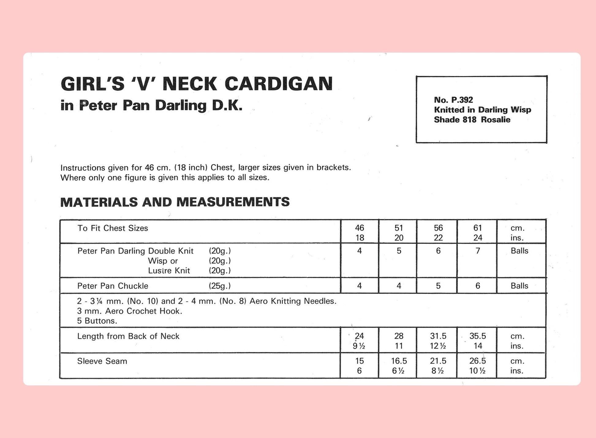Also requires pairs of US3/UK10 (3.25mm) and US5/UK8 (4mm) straight needles, D/3 (3mm) crochet hook and 5 buttons.