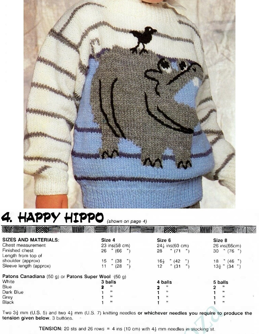 Vintage Knitting Pattern Childs Kids Hippo Hippopotamus Sweater PDF Instant Digital Download Kids Animal Pullover 4-6-8 yrs 10 Ply