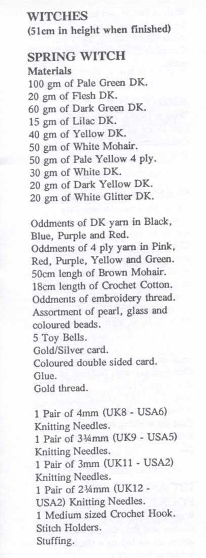 Vintage Knitting Pattern Knit Four Seasons Witch Dolls 20" PDF Instant Digital Download Winter Spring Summer Autumn Amigurumi Witches 8 Ply