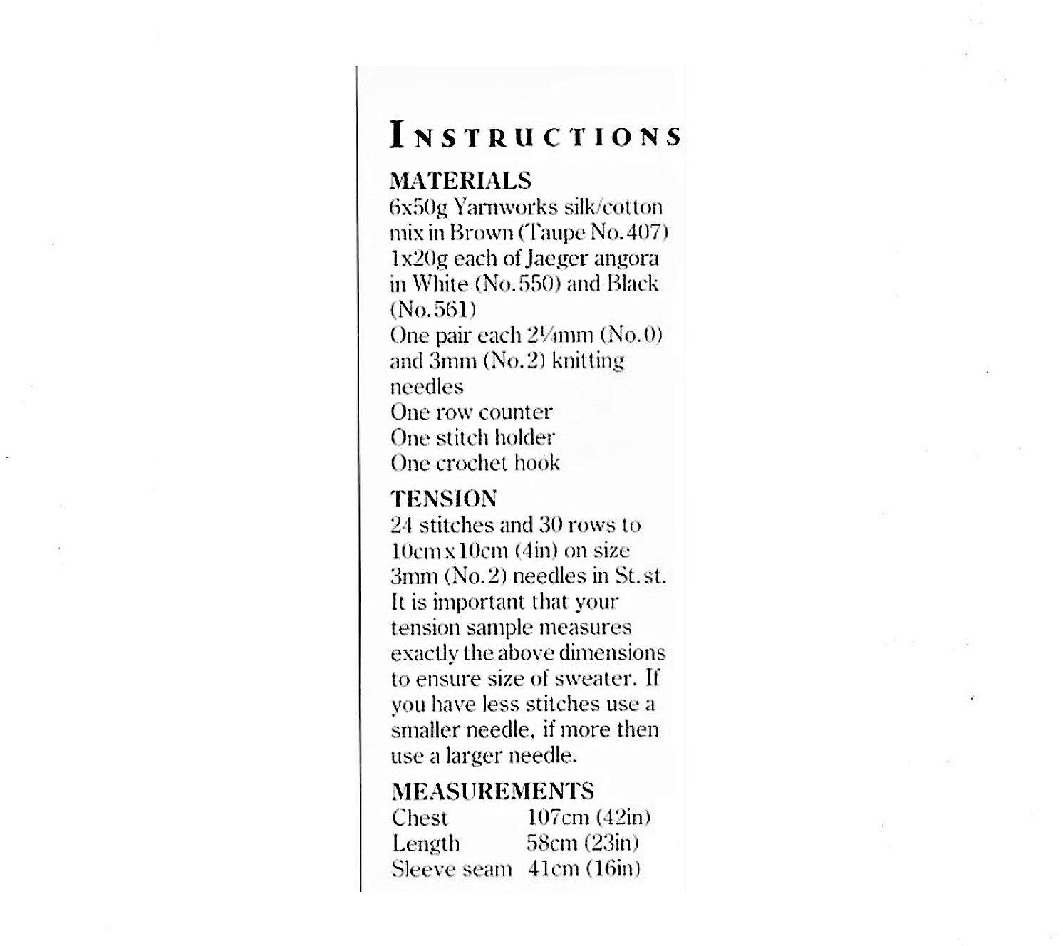 This mid '80s animal motif sweater is stitched in 4 ply, with the panda in soft black & white angora blend 4 ply, giving the panda a soft fuzzy look and feel!