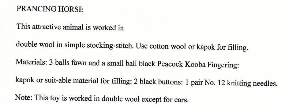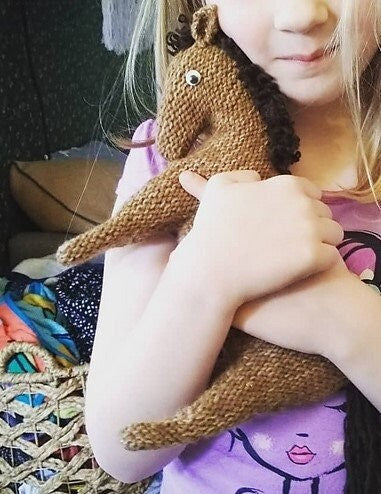 Offering a vintage digital PDF knitting pattern to make a charming and simple knitted Horse toy!