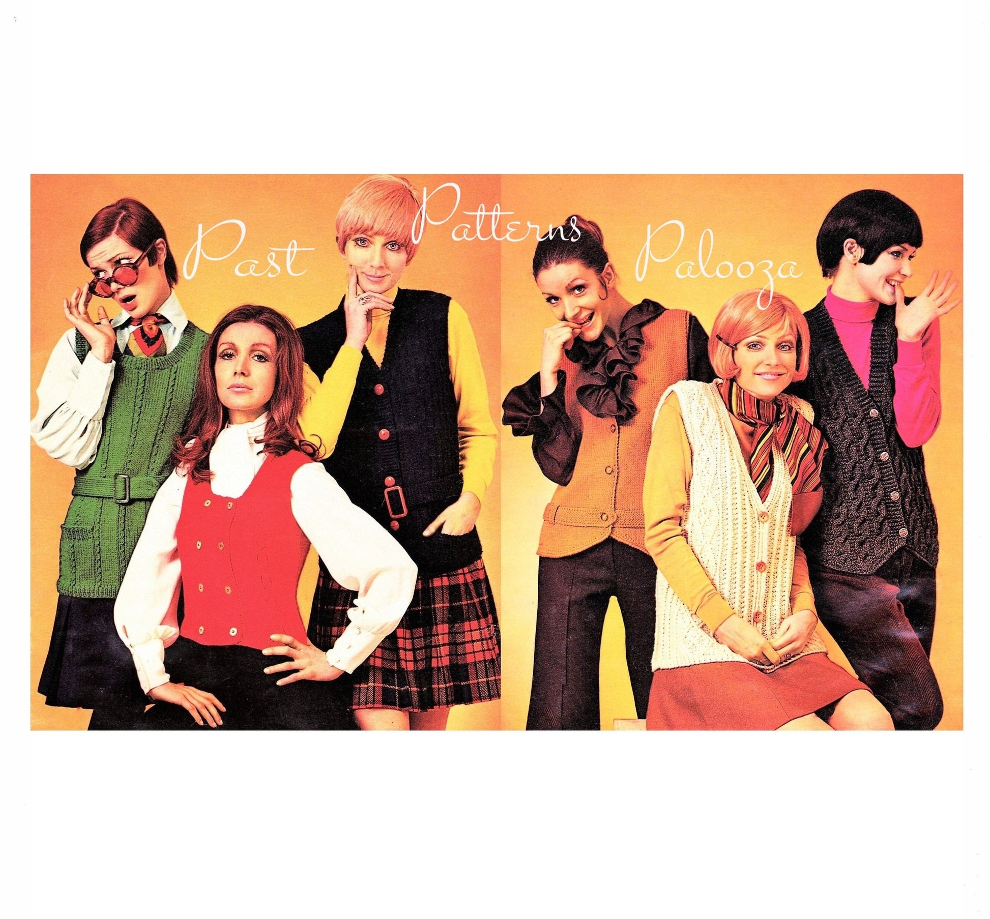 Offering a vintage PDF knitting pattern to make six fun and funky, retro 1969 vests for ladies!