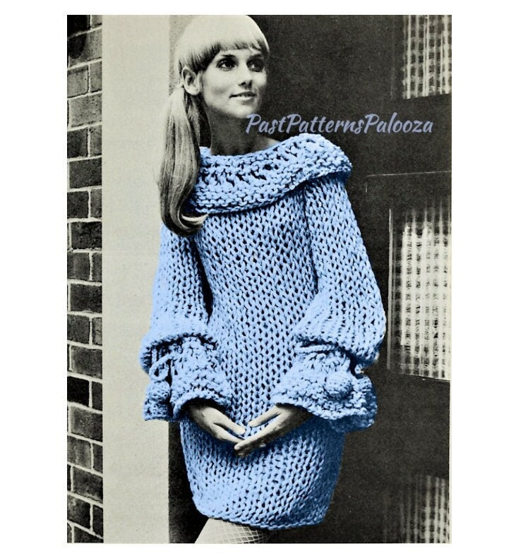 Vintage Knitting Pattern Womens Cape Collar Mini Dress Retro 1968 Boho Bell Sleeves PDF Instant Digital Download Mod Dress Big Needle Knits