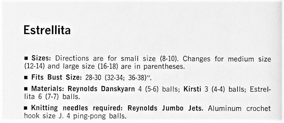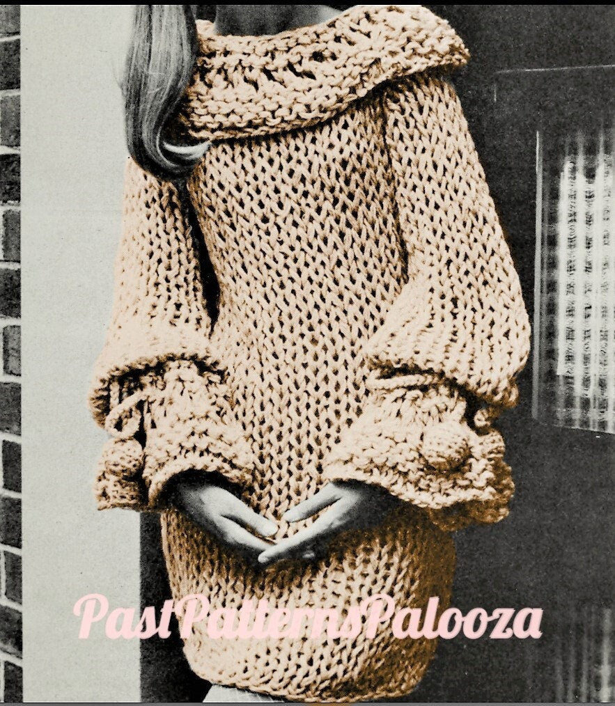 This fabulous 1968 project is quick and easy knitting done on Jumbo needles! (size US 50 / 25mm).