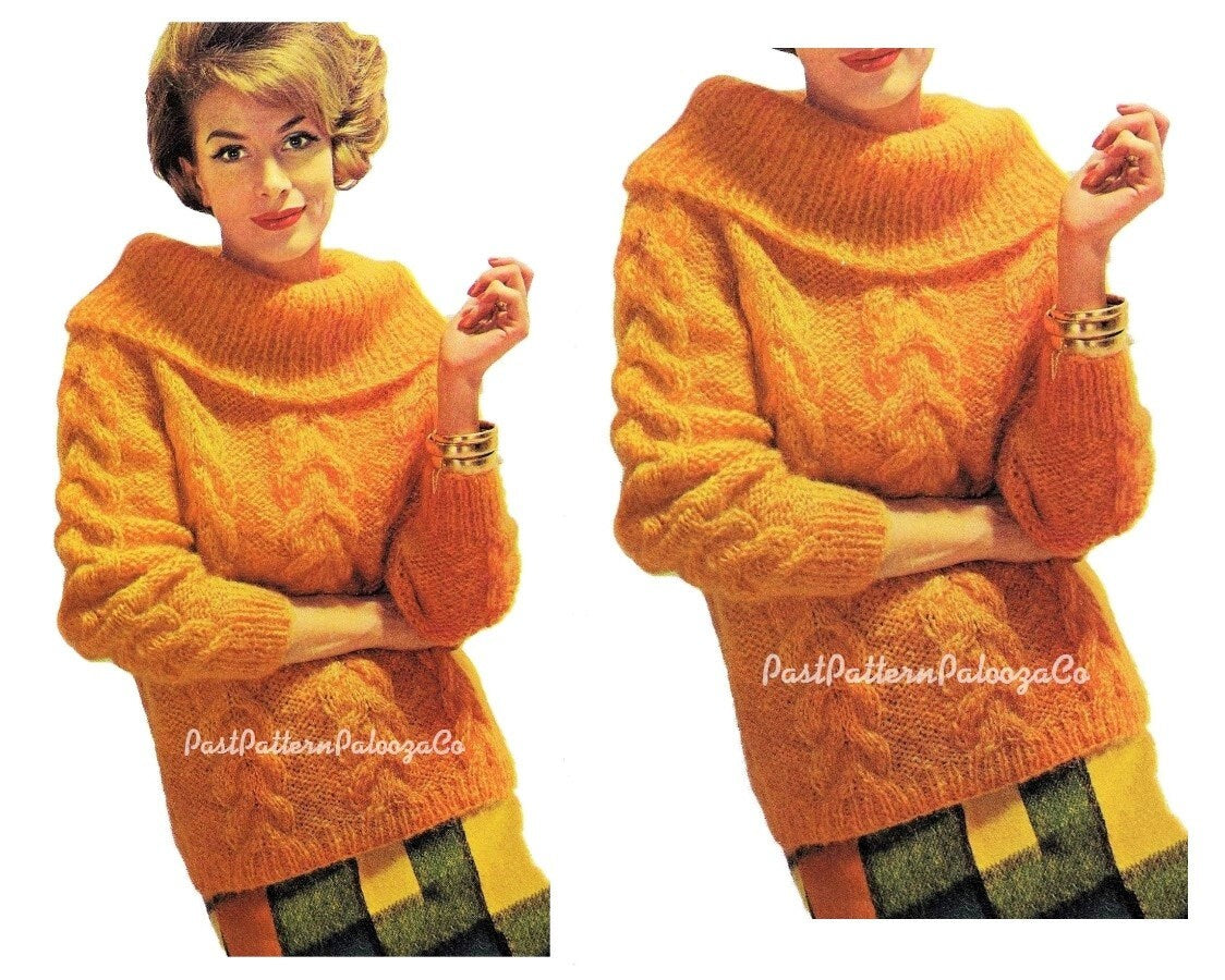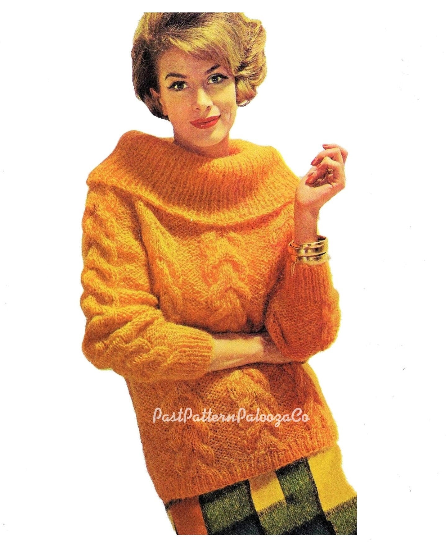Vintage Knitting Pattern Womens Chunky Mod Cabled Sweater PDF Instant Digital Download Retro Boho Chic Wide Neck Mohair Jumper 12 Ply