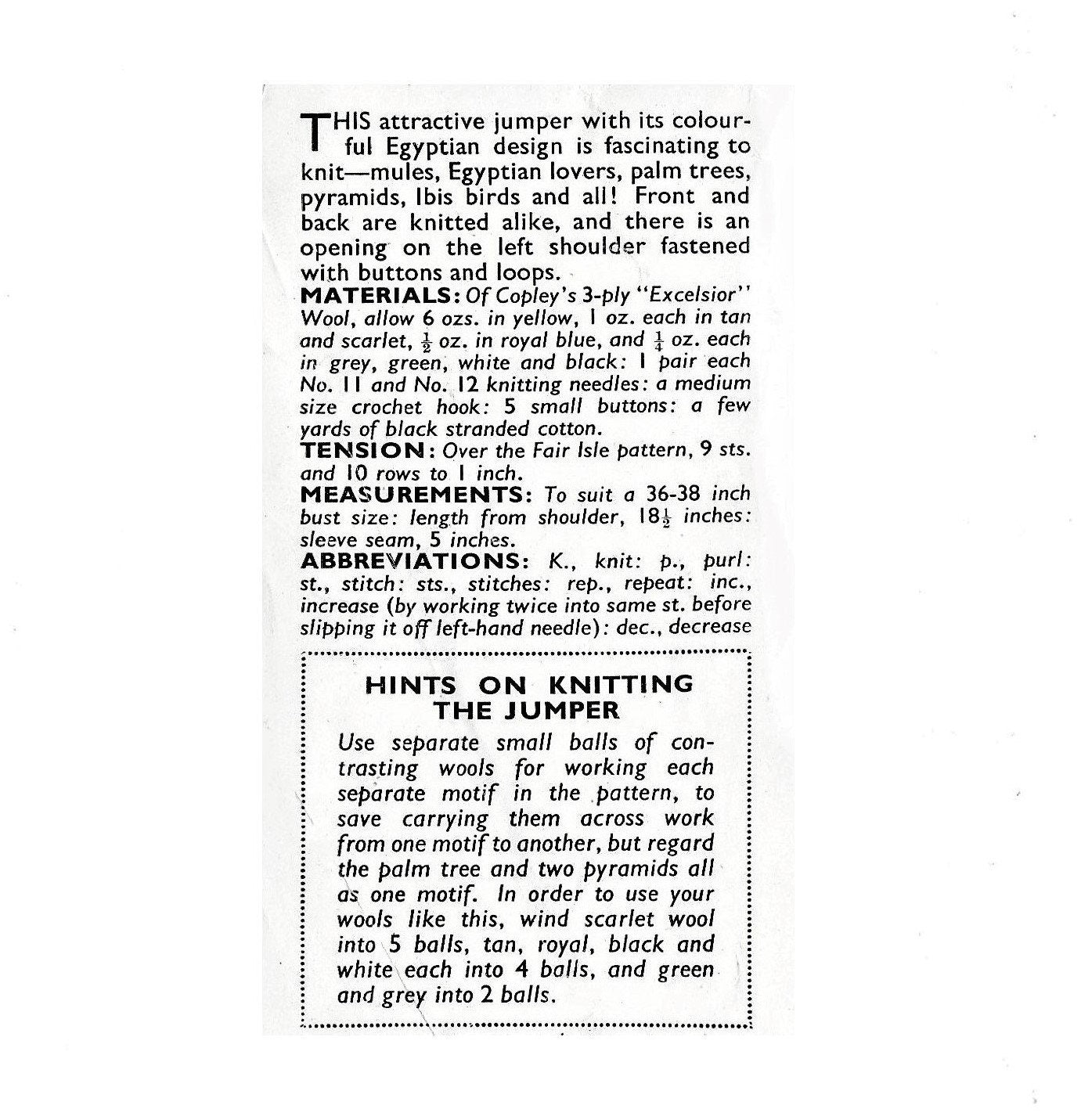 Vintage Knitting Pattern Womens Fair Isle Egyptian Sweater Jumper PDF Instant Digital Download Pretty Egypt Motifs Pullover 3 Ply