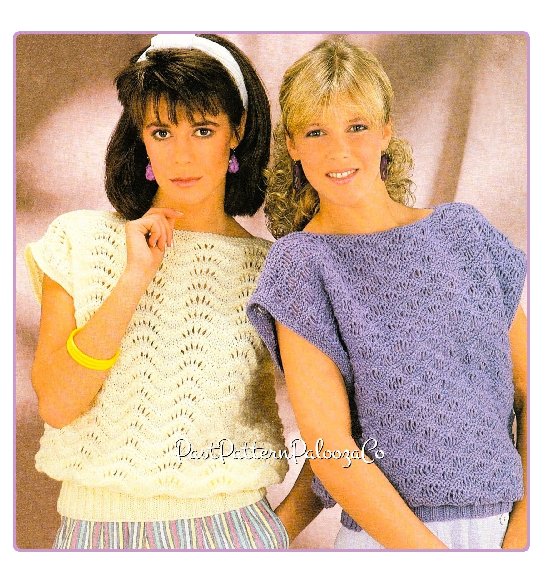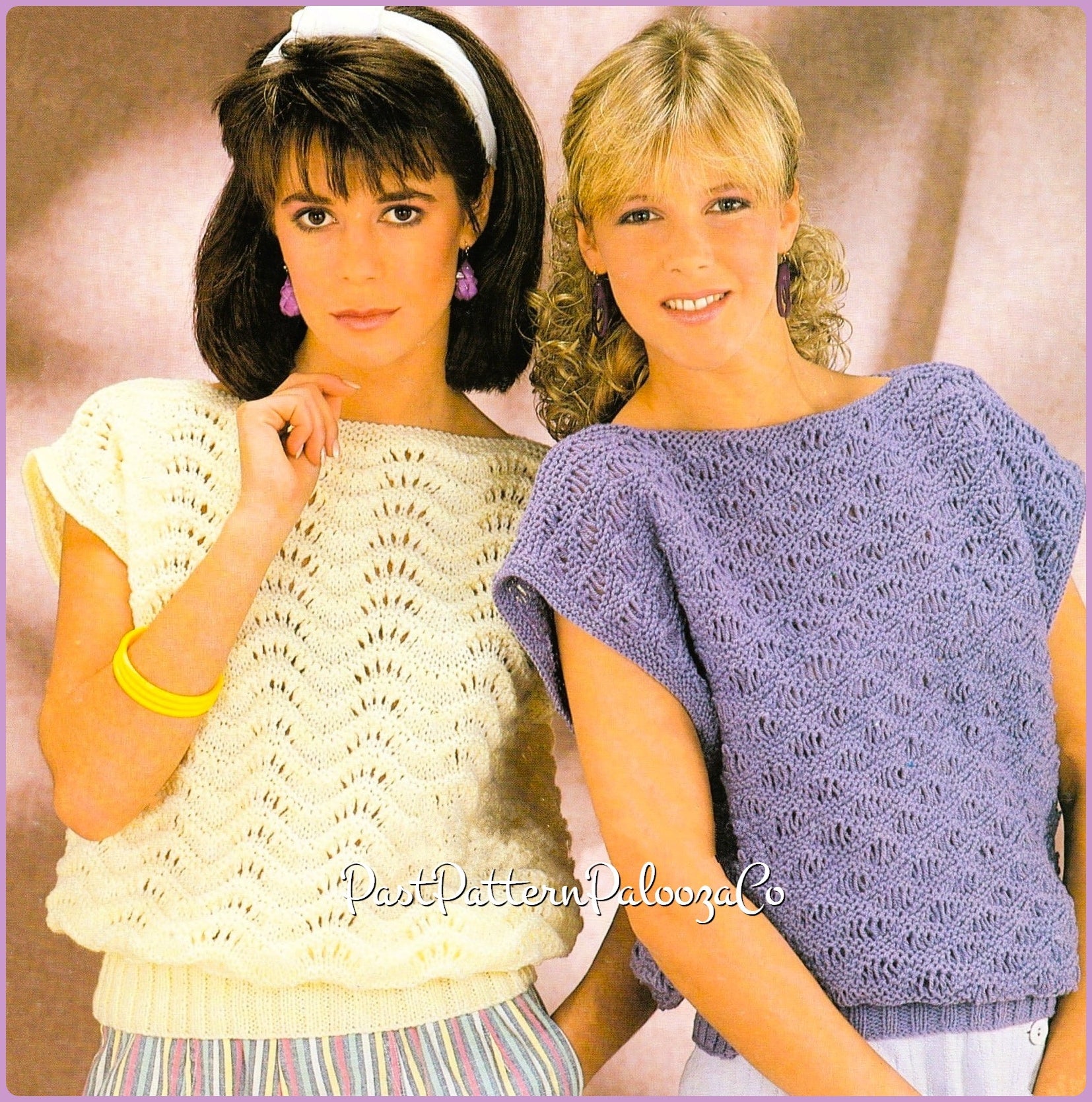 Offering a vintage PDF knitting pattern to make two pretty Feather and Fan stitch pullover sweaters in DK yarn!