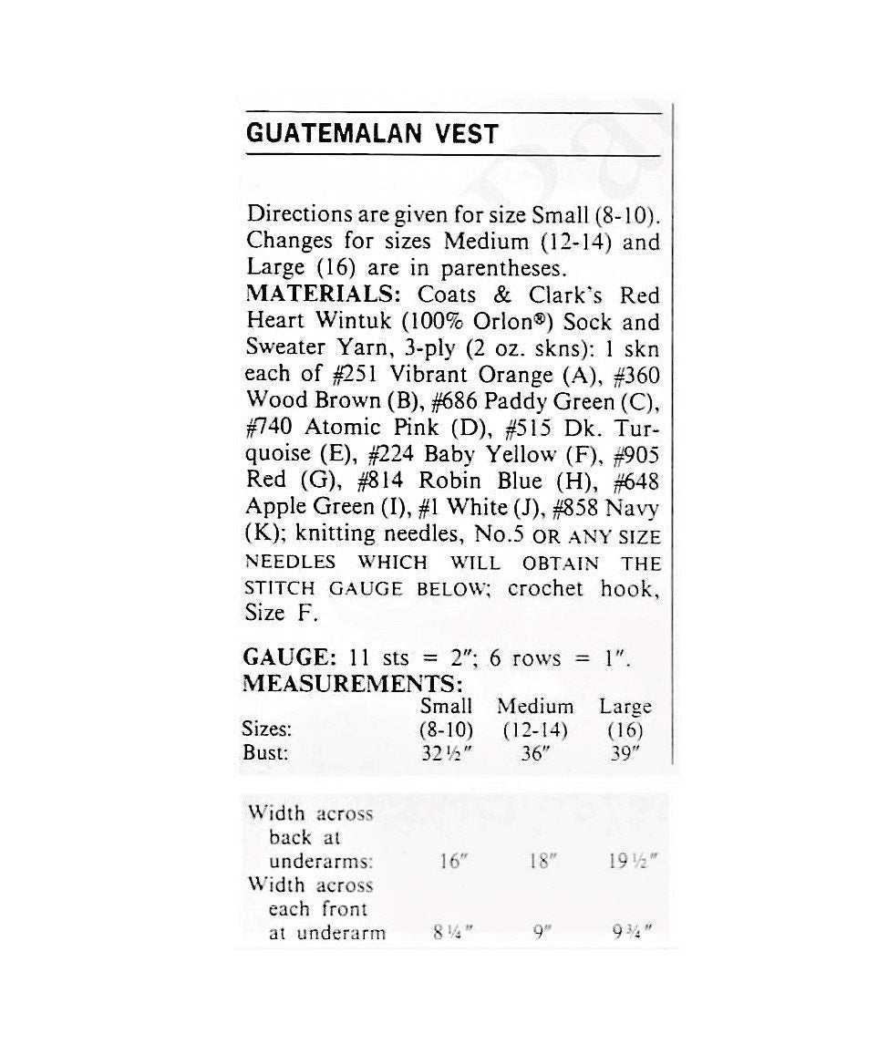 Offering a vintage knitting pattern to make a beautiful Fair Isle Guatemalan vest in lively colors with authentic native motifs!