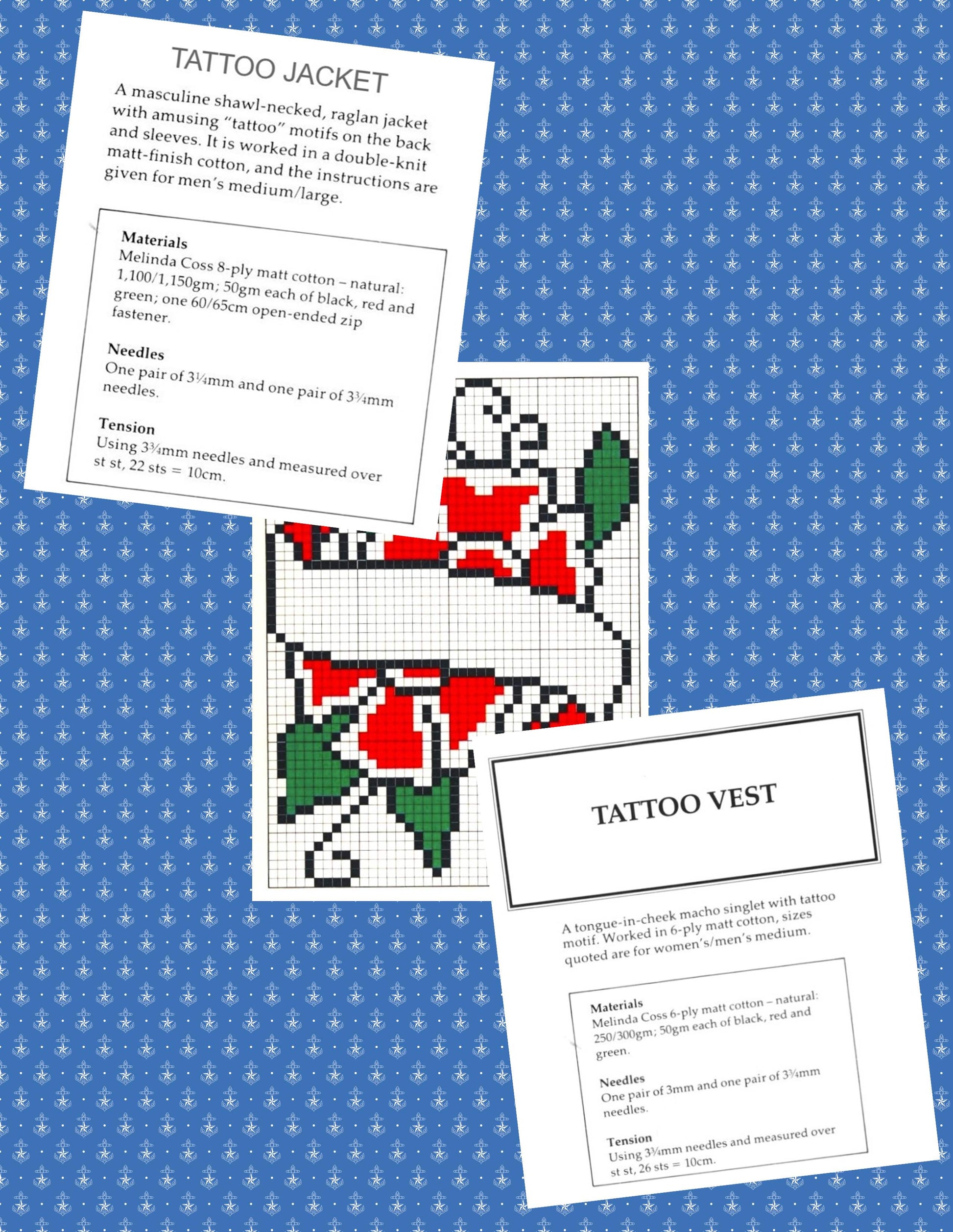 Vintage Knitting Pattern Womens Mens Tattoo Motif Sweater Jacket & Tank Top PDF Instant Digital Download Fun Novelty Roses Dagger Tatts Tops