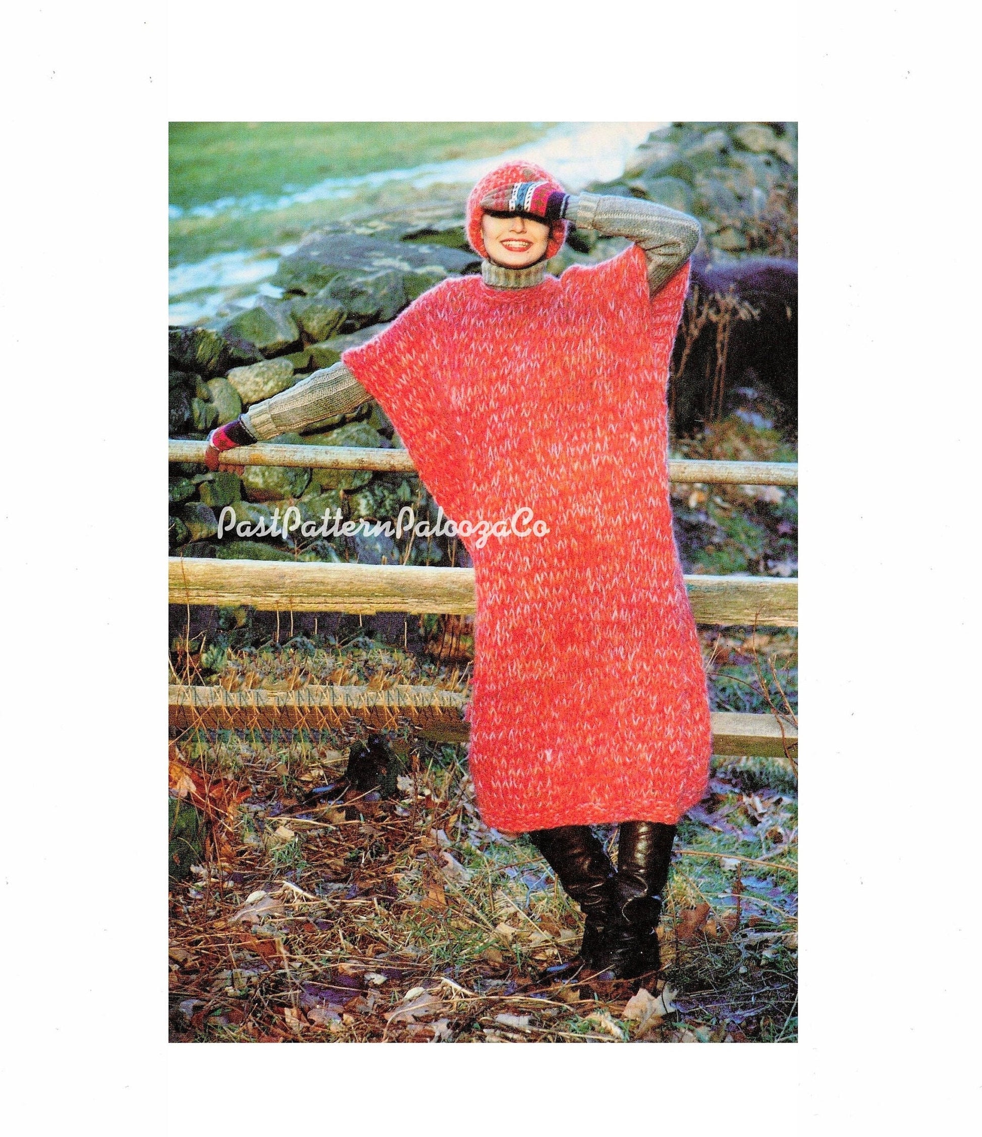 Vintage Knitting Pattern Womens Roomy Jumbo Stitch Poncho Sweater and Hat Set PDF Instant Digital Download Retro Boho Groovy Chic Mohair