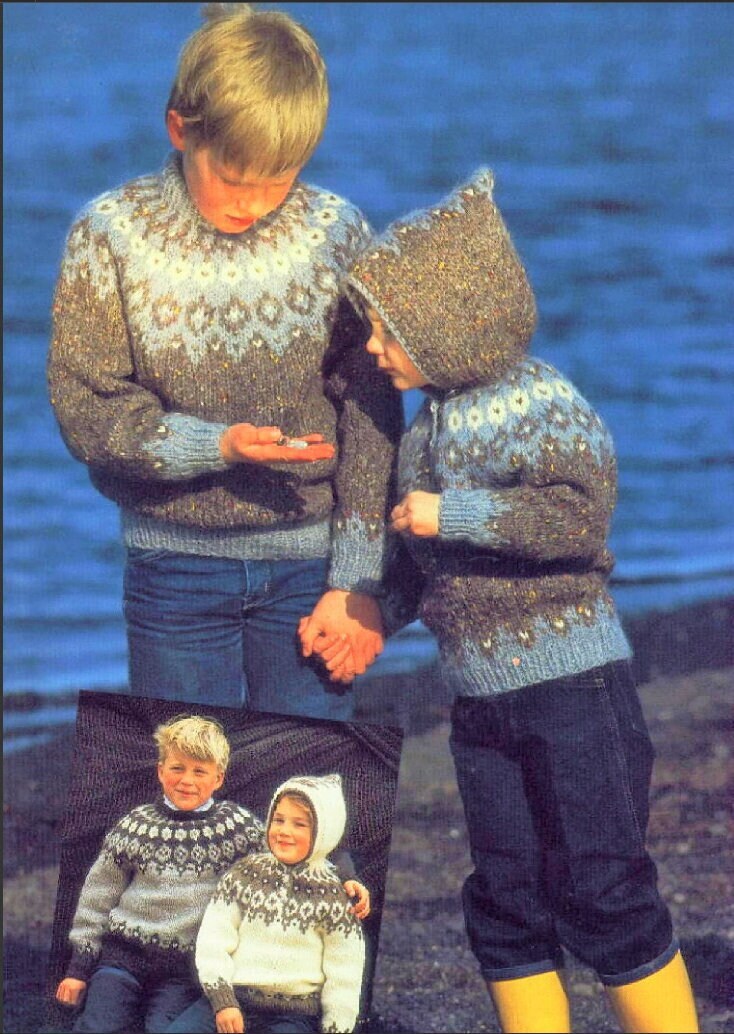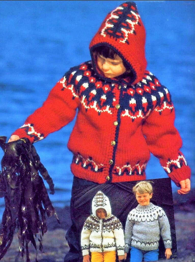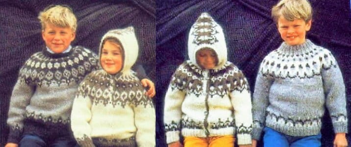 Offering a vintage PDF knitting pattern collection to make Nordic Lopi Icelandic sweaters for girls and boys.