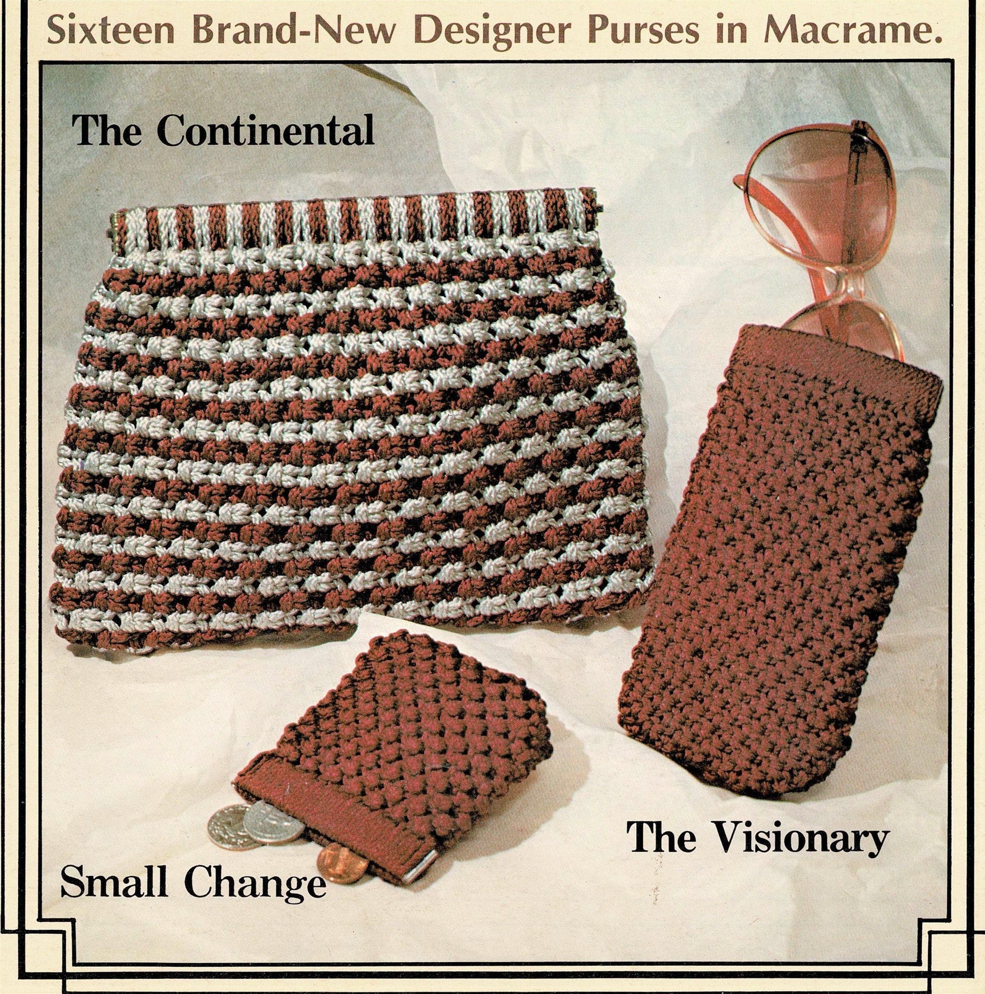 Vintage Macramé Designs Patterns Book Designer Bags Purses Handbags PDF Instant Download Macrame Purse News 16 Designs How To Knotwork 1979