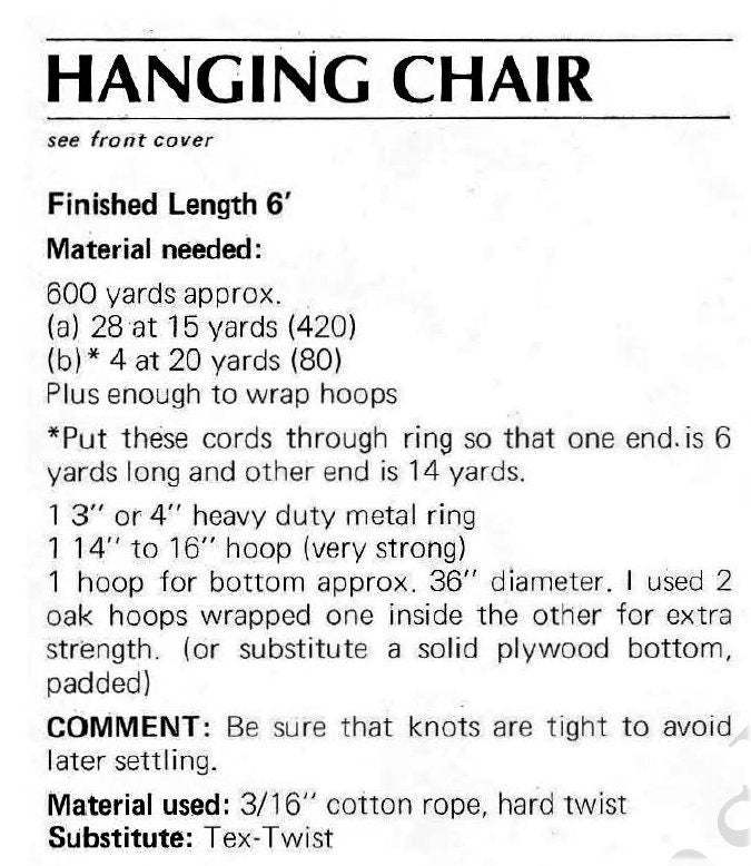 Vintage Macrame Pattern 6' Large Outdoor Swinging Chair Hanging Patio Backyard Swing Boho Hippie Chic PDF Instant Digital Download 6 Foot