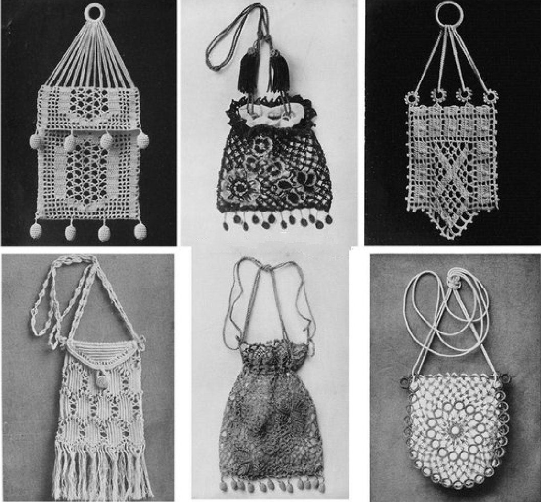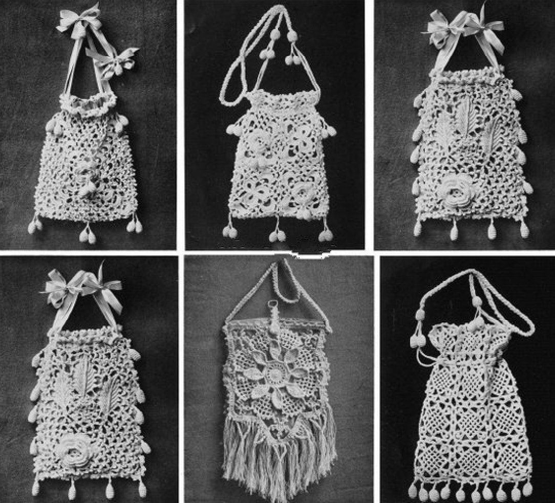 Instructs for making 28 of the most charmingly quaint Gibson Girl / Titanic / WWI era Irish Crochet accessories. (17) hand bags, purses and reticules. Baby bonnets (3), slippers, ties (3), scarf, belts (3), toque hat and other clothing accessories!
