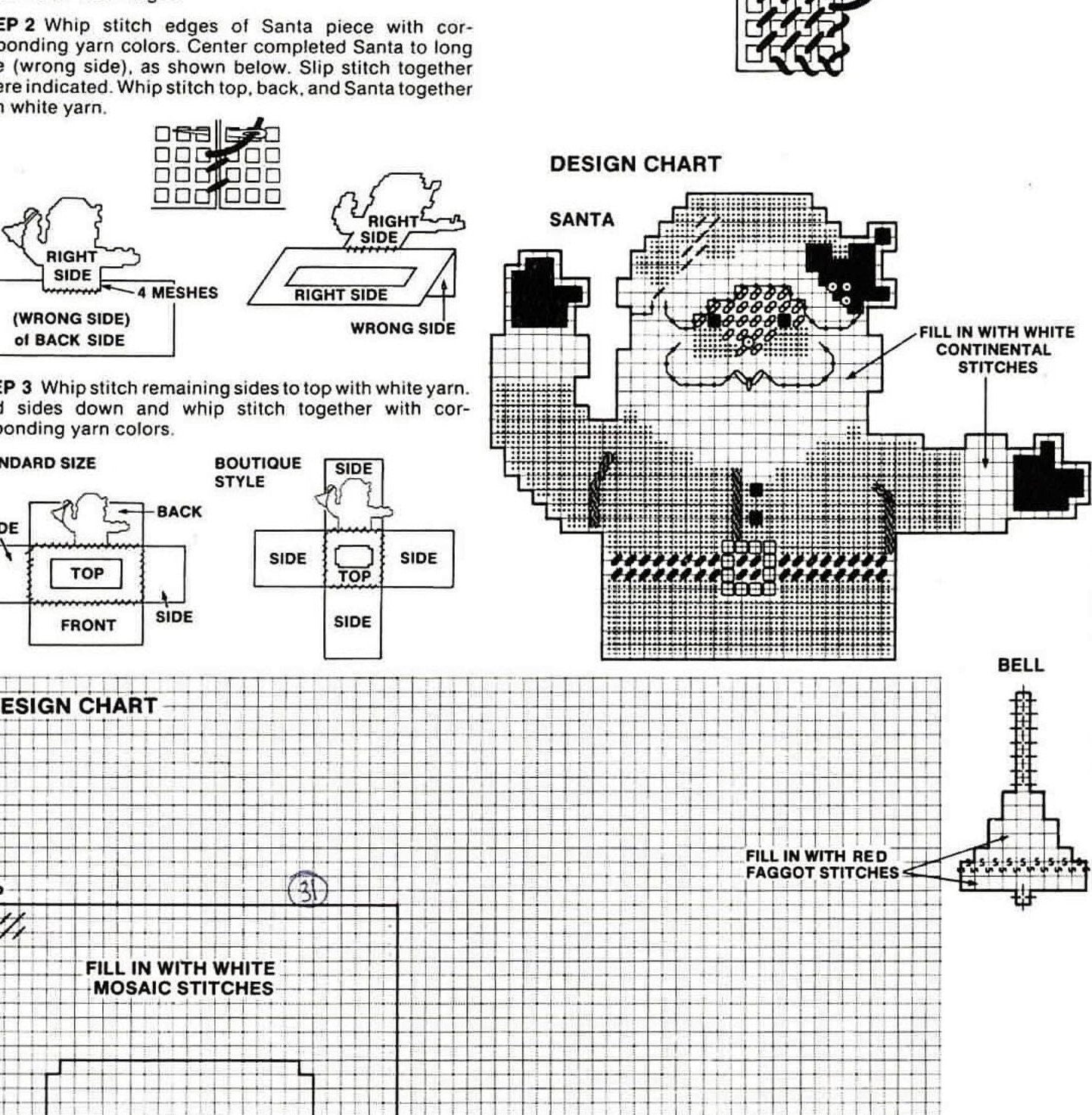 Vintage Plastic Canvas Christmas Tissue Box Cover Pattern Santa Chimney Holiday Tissue Topper PDF Instant Digital Download 2 Sizes 7 Count