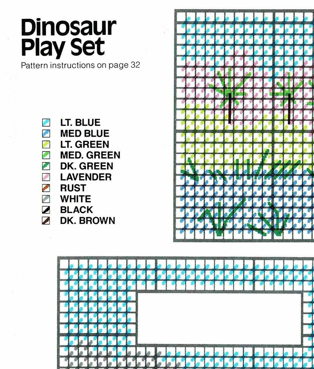 Offering a vintage digital PDF plastic canvas pattern to make a delightful Dinosaur Playset in 7 count!