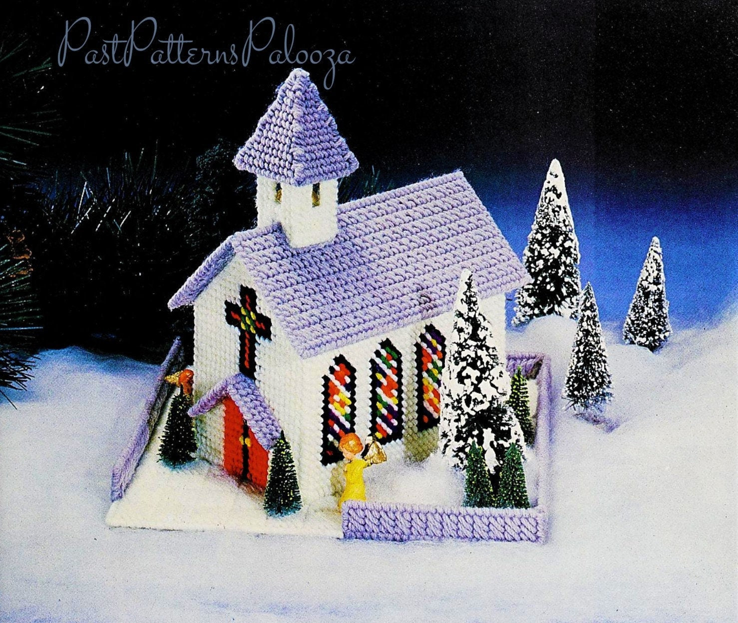 Vintage Plastic Canvas Pattern 8" Christmas Church Centerpiece PDF Instant Digital Download Christmas Needlepoint Village Display 7 Count