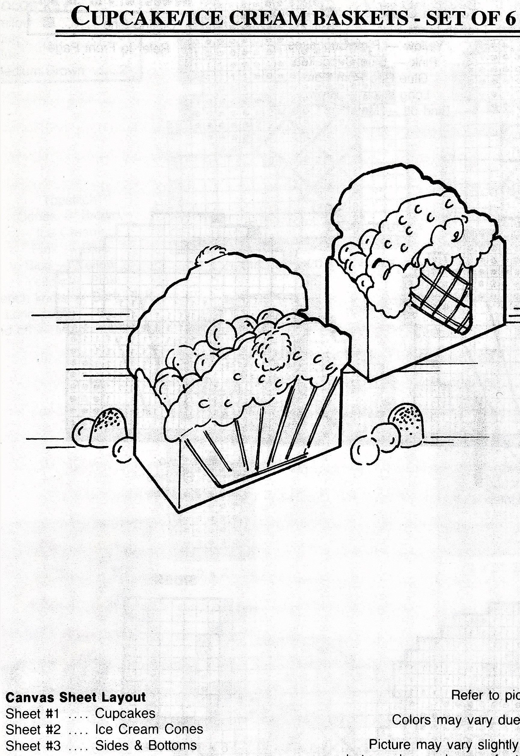 Vintage Plastic Canvas Patterns 3.5" Mini Cupcake and Ice Cream Treat Holder Baskets PDF Instant Digital Download Birthday Party Shower
